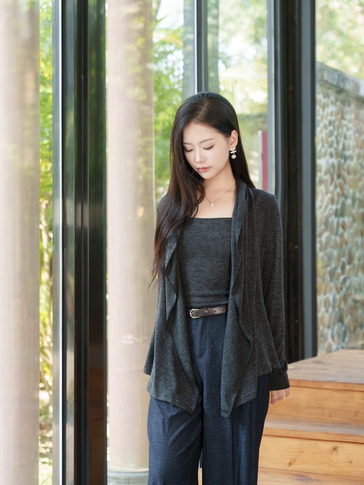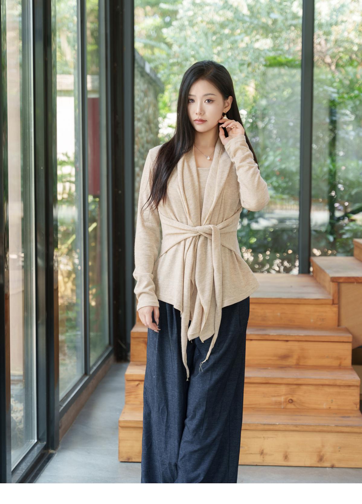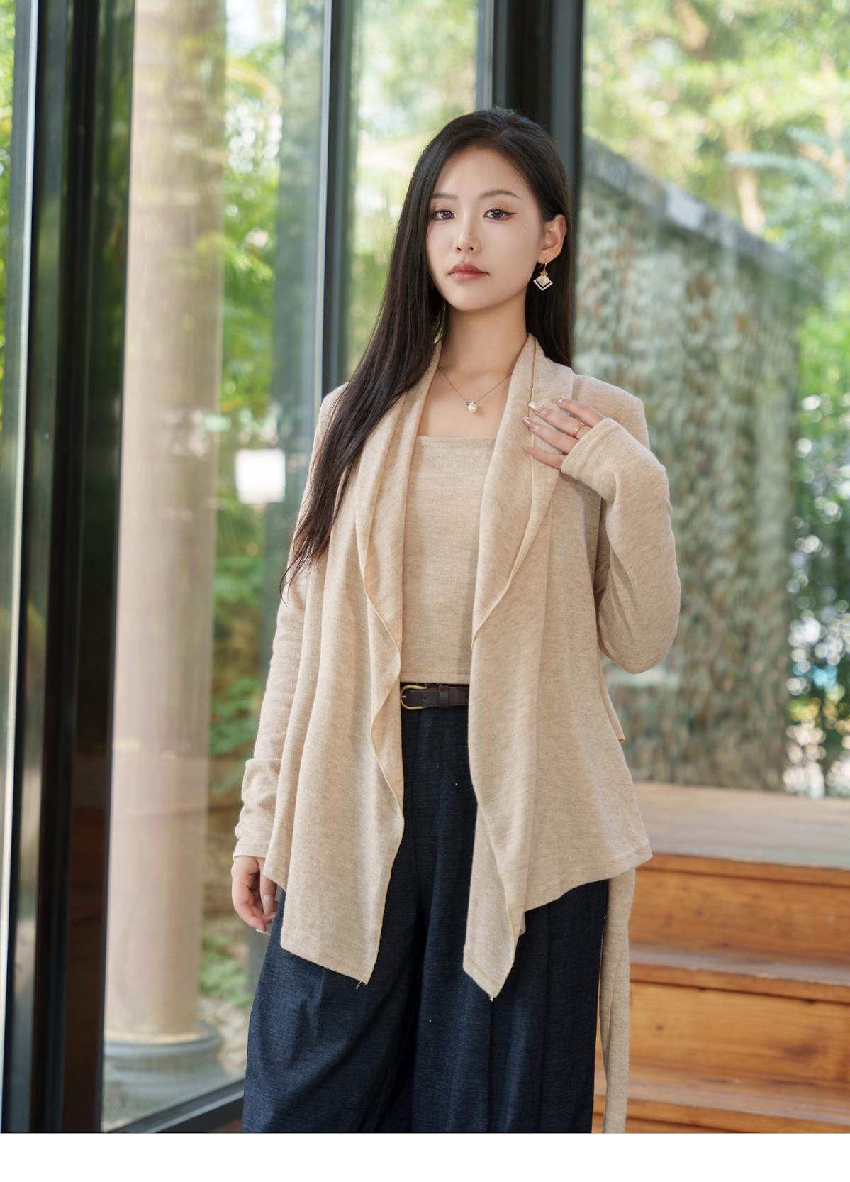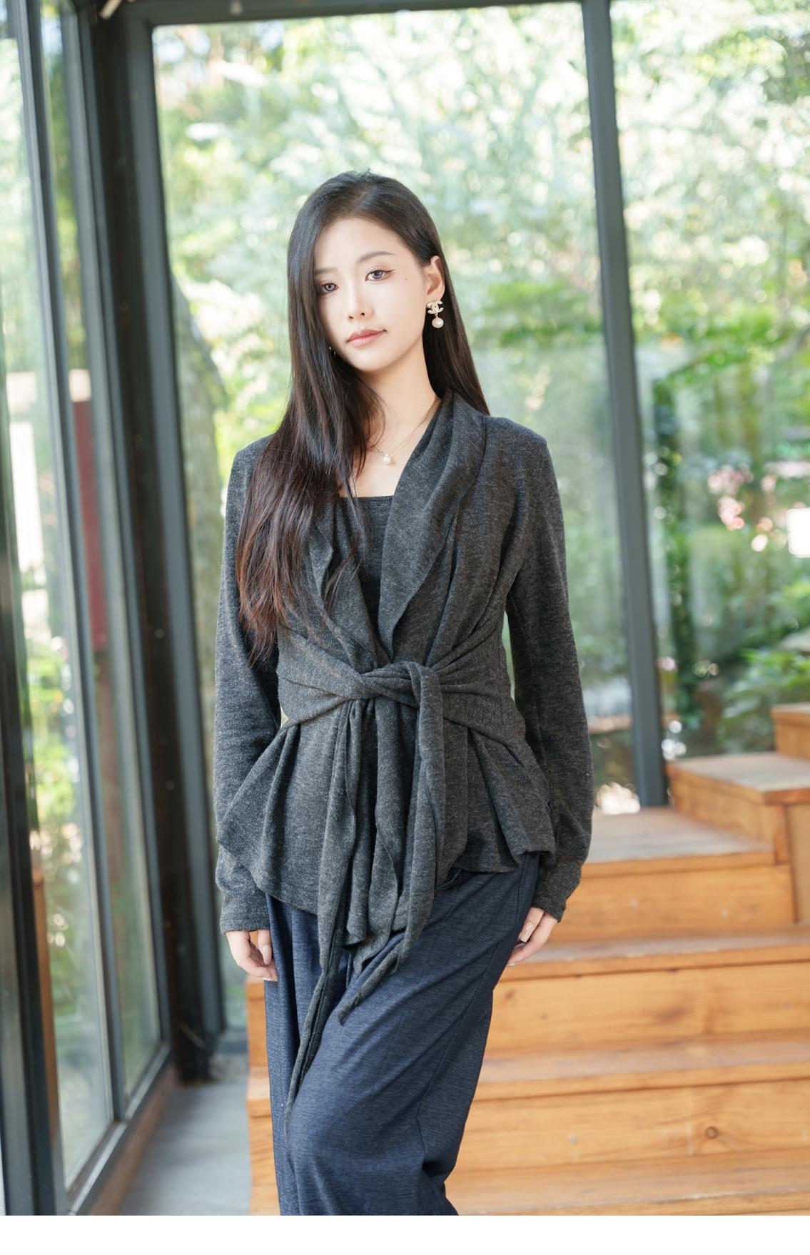 초가을 니트 스웨터 여성 2025 신상품 가을 레이지 스타일 카디건 투피스 세트 가을 웨어 네이비 블루 웨어 허리