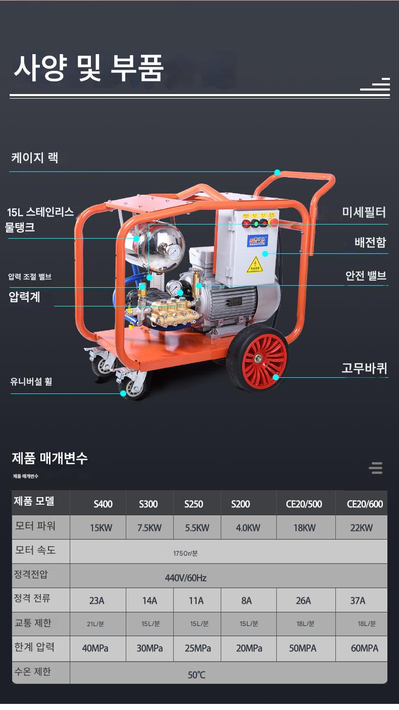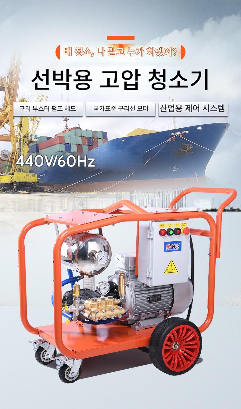 초고압 선박 세척기 440V 워터젯 건 500/600bar 선박 데크 녹 제거 페인트 선실 바닥 세척