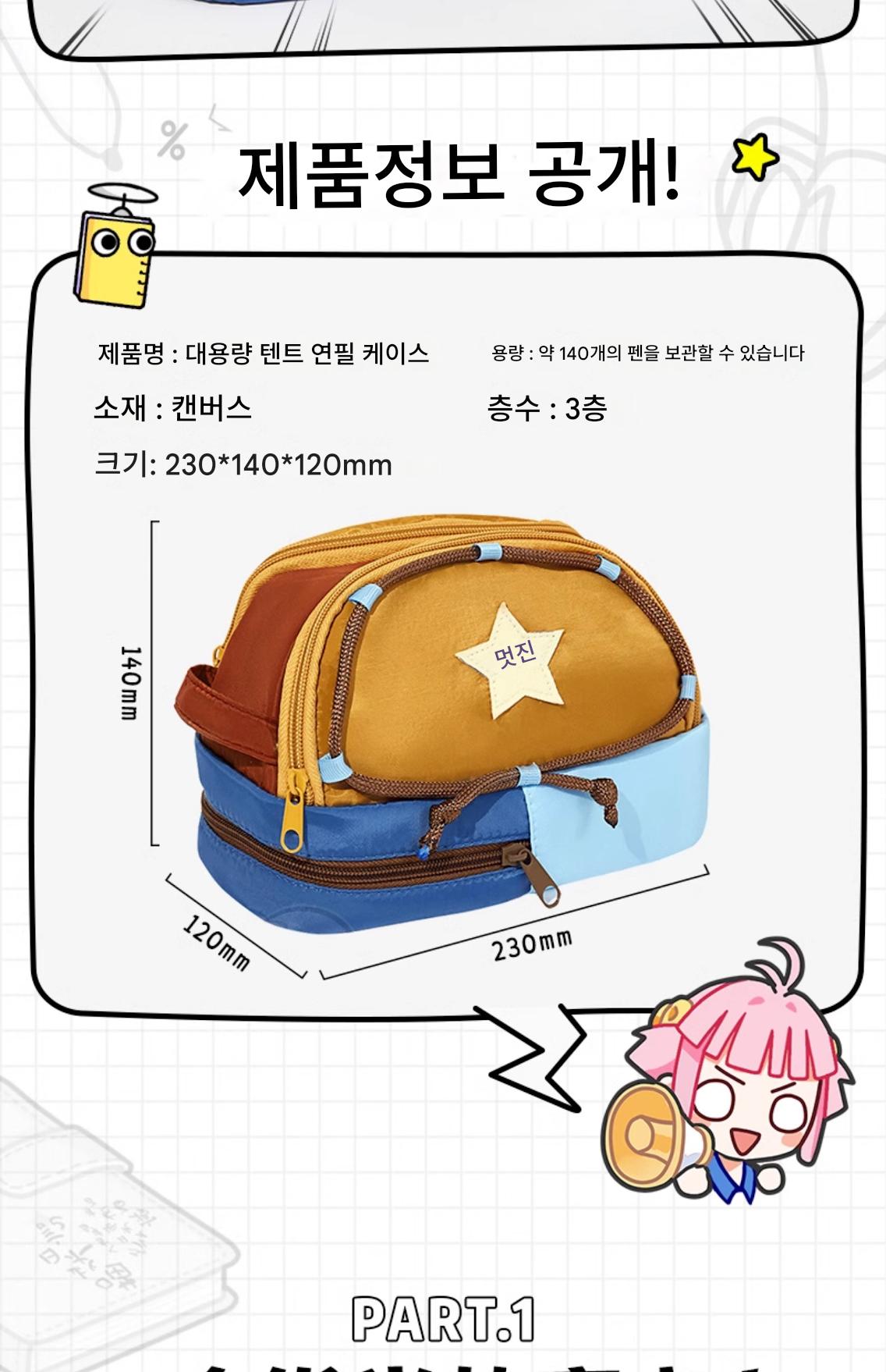 초대용량 텐트형 연필 케이스 ~ 2024년 신입 중학교 여초등학생 고가치 다층 문구 연필 케이스