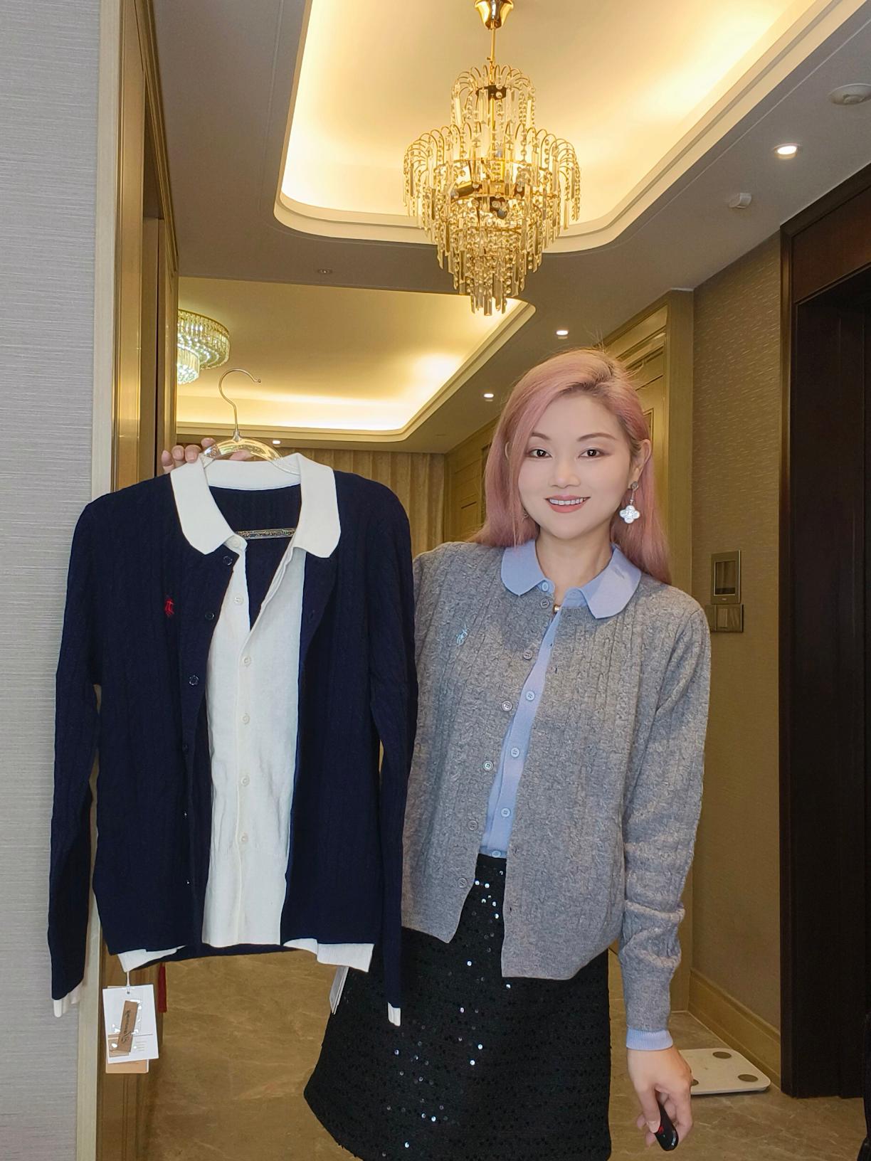 초봄 유럽 스테이션 페이크 투피스 폴로넥 100% 울 케이블 니트 자수 폴로 스웨터 카디건 스웨터