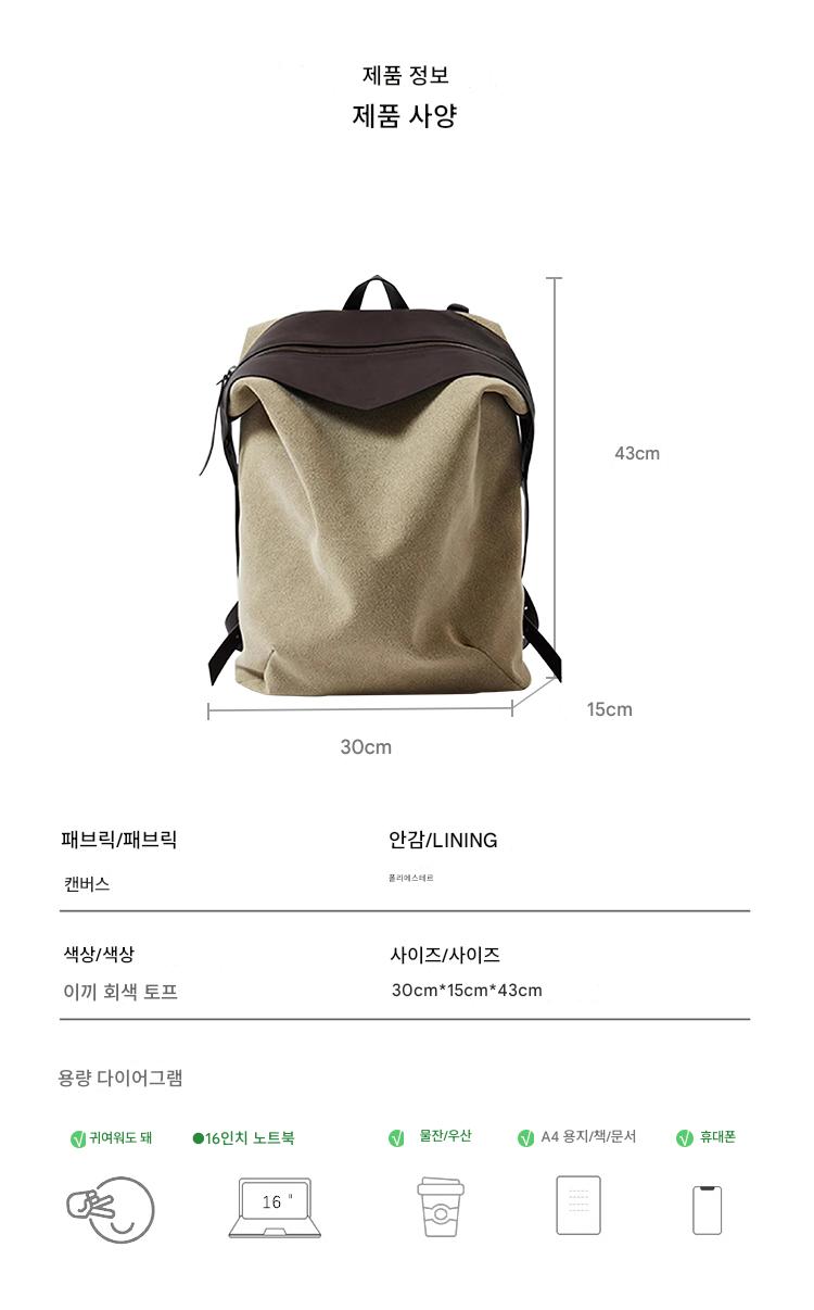 출퇴근용 심플 남녀용 백팩 대용량 2025년 신상품 경량 캔버스 컴퓨터 백팩 여행 학생용 책가방