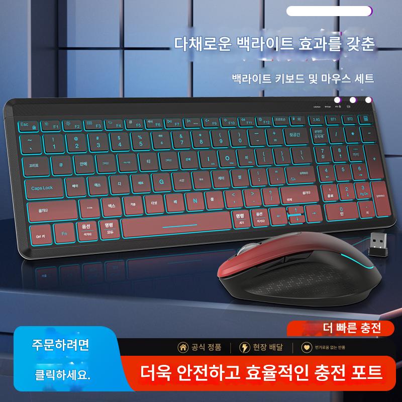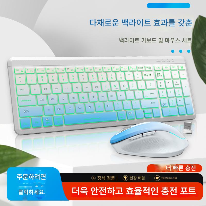 충전식 무선 블루투스 키보드 및 마우스 세트 무음 백라이트 사무실 노트북 데스크탑 컴퓨터 외부 키보드 및 마우스
