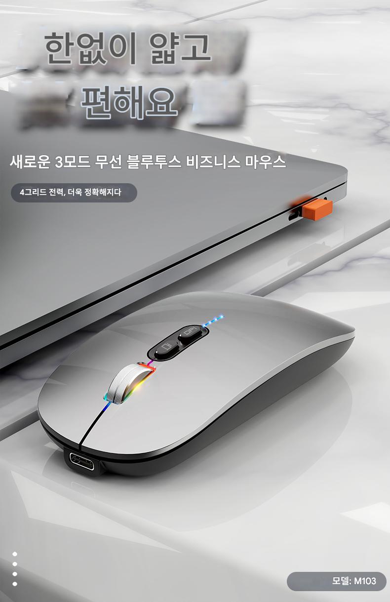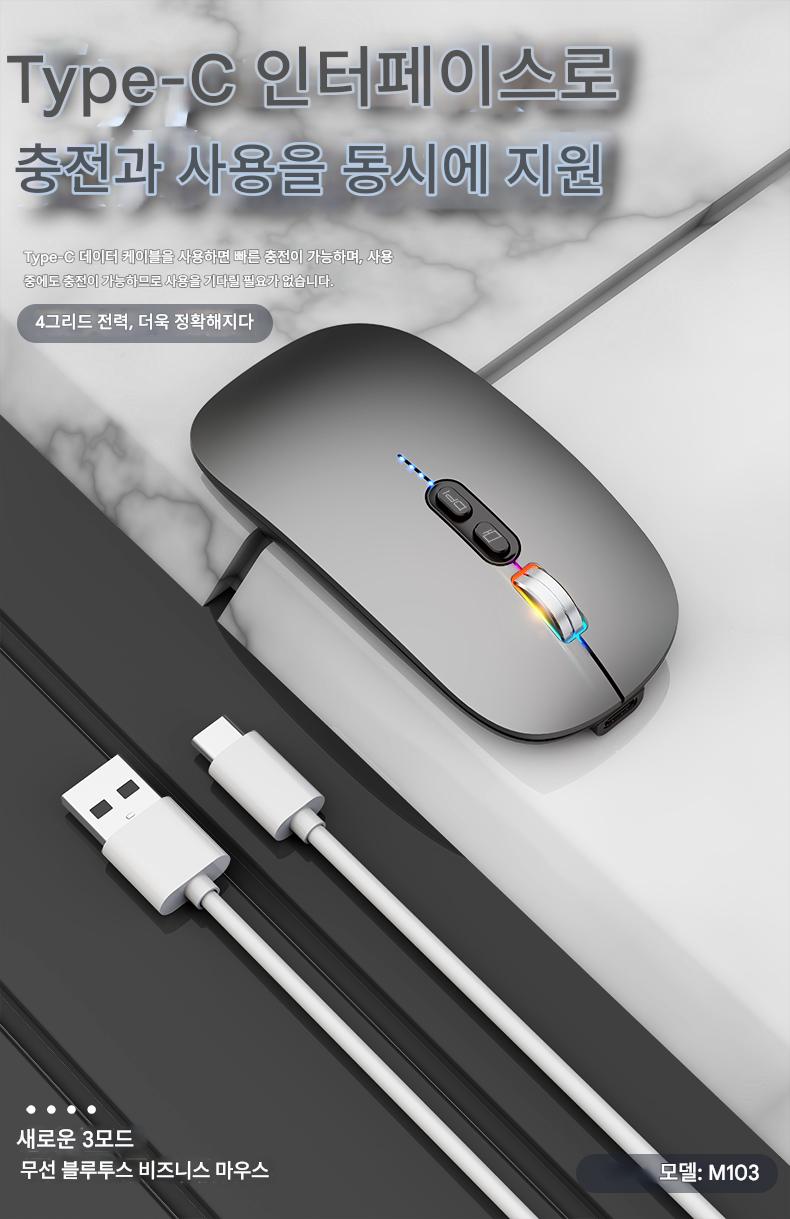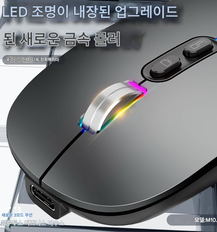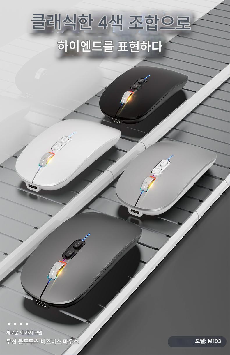 충전식 발광 사무실 마우스 홈 심플 휴대용 무소음 Type-C 블루투스 3모드 무선 마우스 범용
