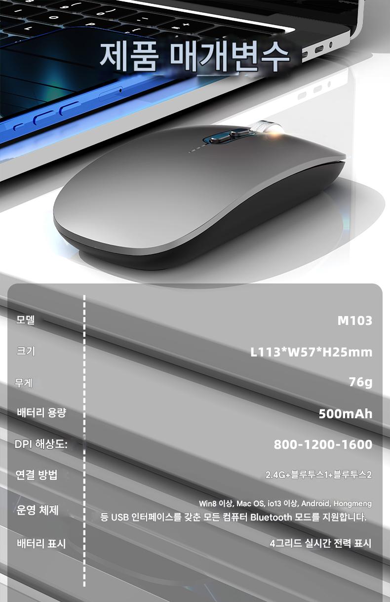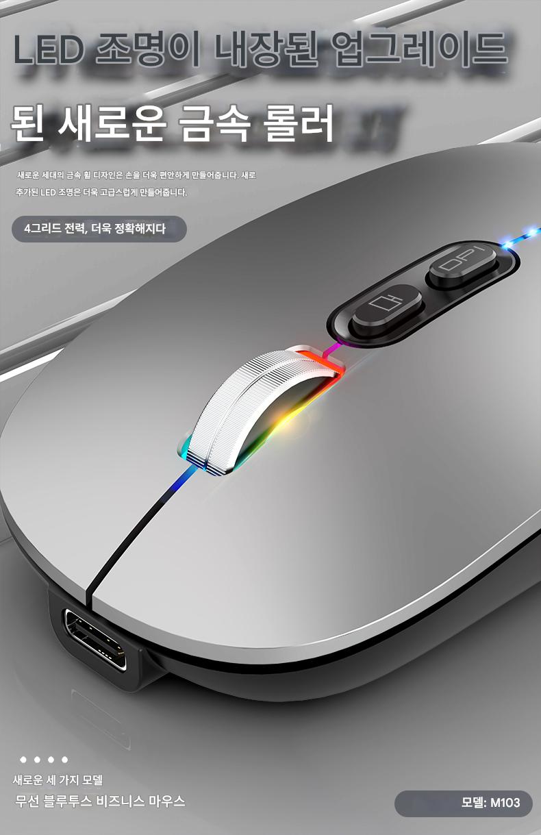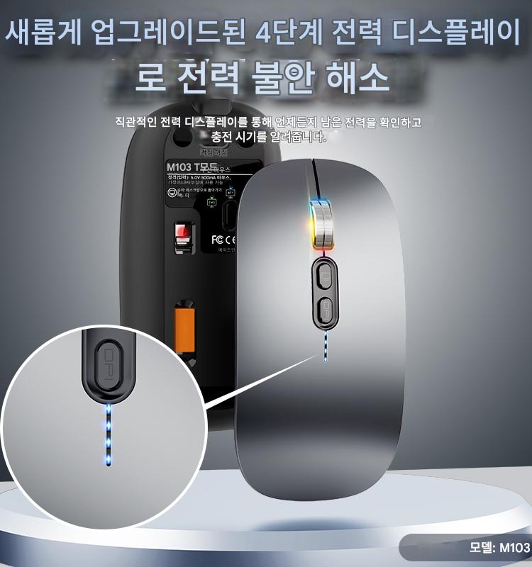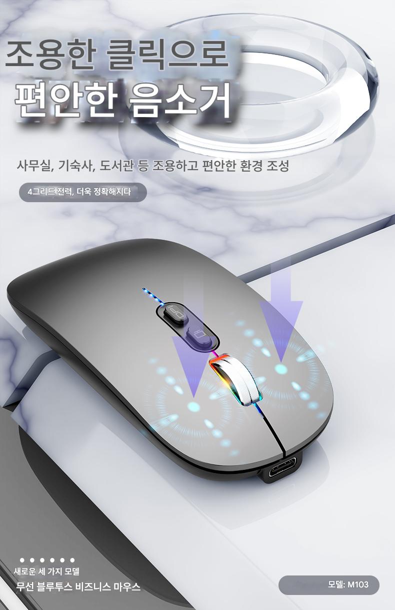 충전식 발광 사무실 마우스 홈 심플 휴대용 무소음 Type-C 블루투스 3모드 무선 마우스 범용