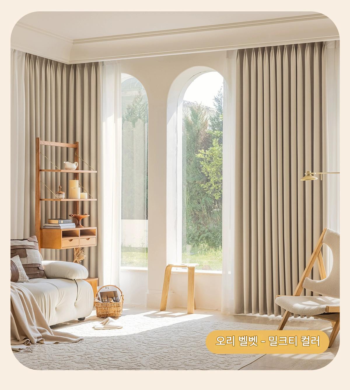 奥瑞绒奶油色+轨道顶装 【窗帘颜色可换】-挂钩 > 适用宽2.6-3.1m【帘高2.5m】双开