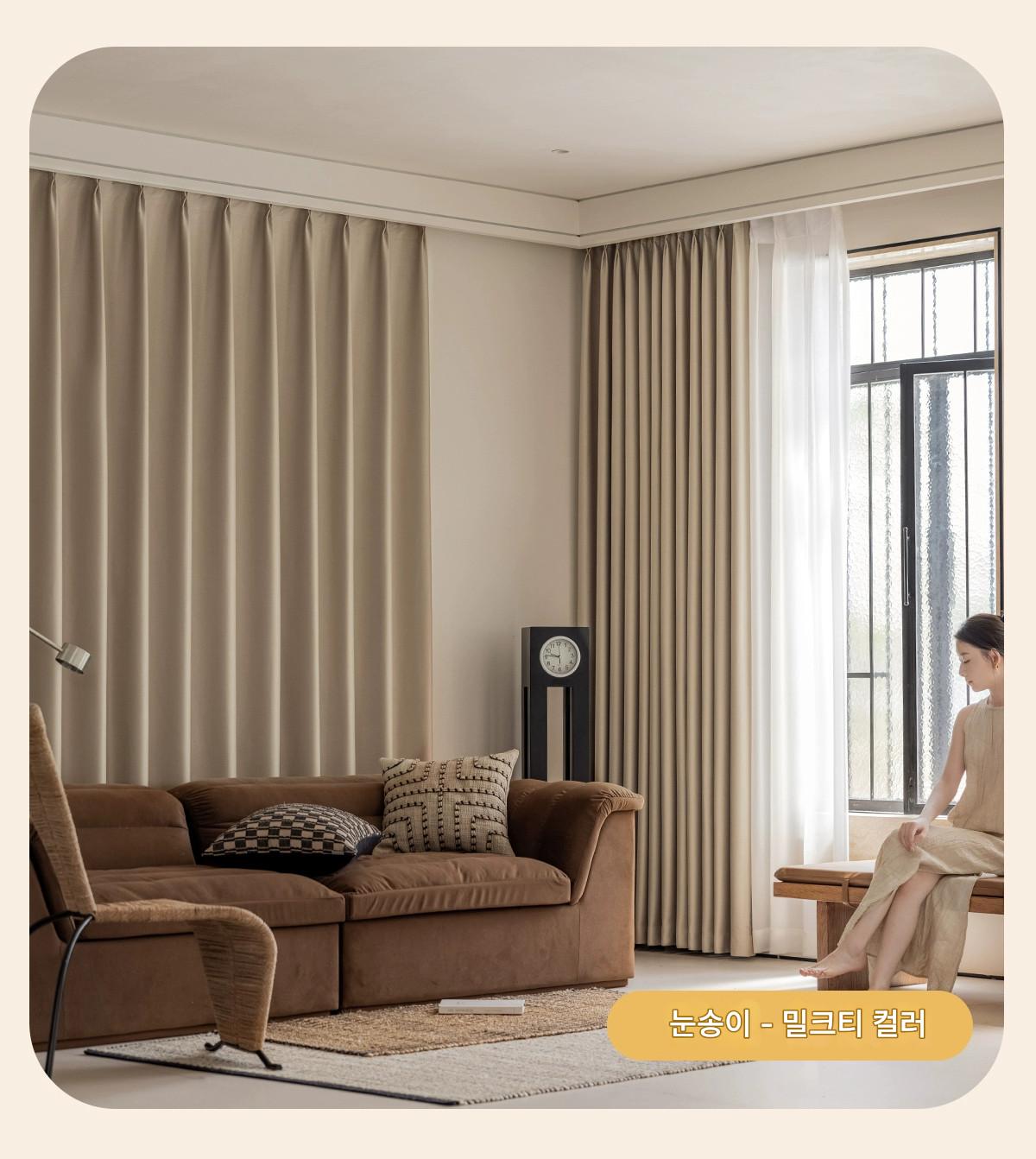 雪绒-奶茶色-挂钩 > 适用宽3.6-4.0m【帘高2.7m】双开
