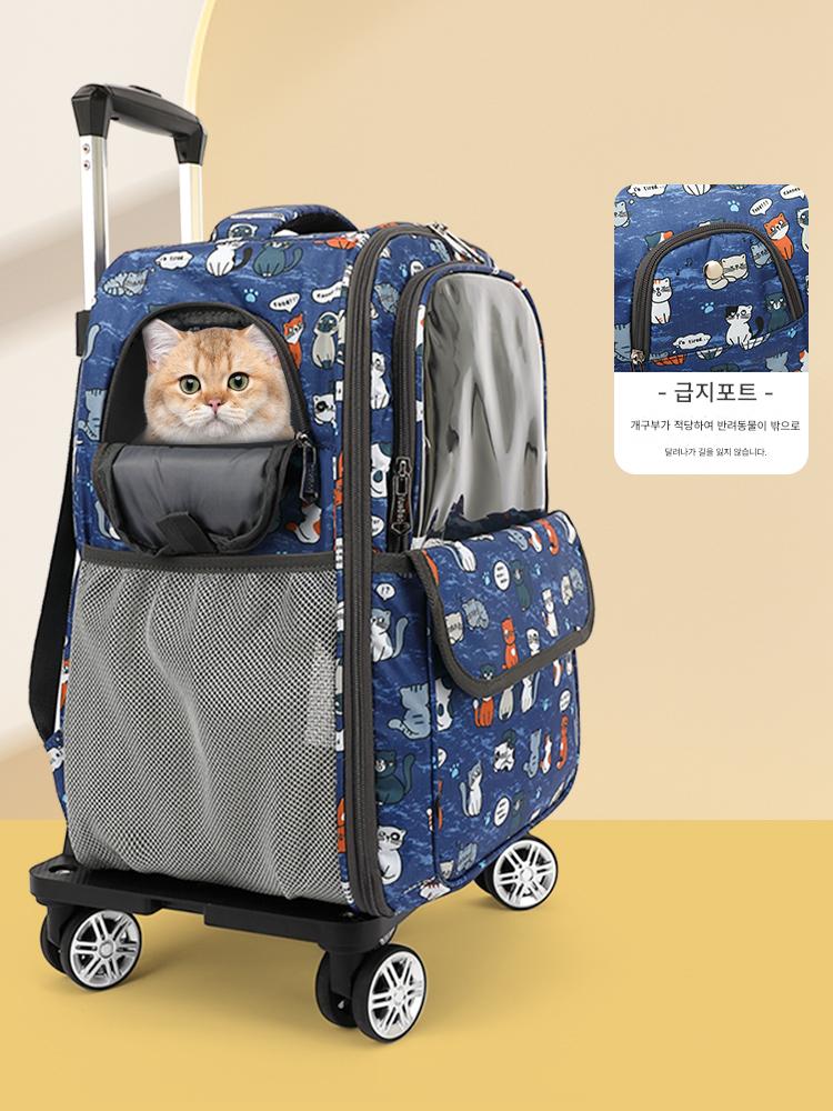 카트가 달린 고양이 가방, 가볍고 대용량의 백팩, 반려동물 유모차, 반려견 가방, 휴대용 범용 휠 여행 가방
