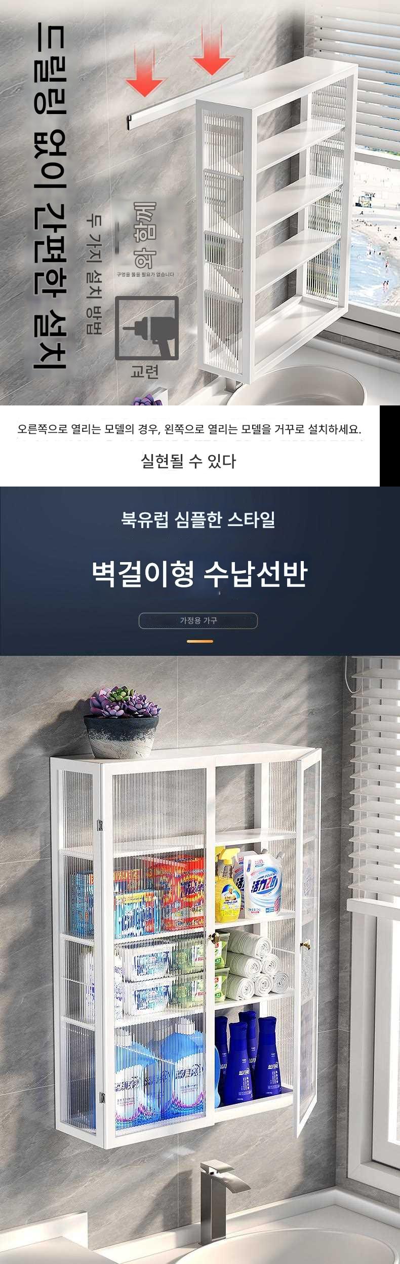 캐비닛 도어 벽면 욕실 펀치 없는 수납 선반 욕실 세탁기 벽면 장착 캐비닛이 있는 발코니 수납 선반