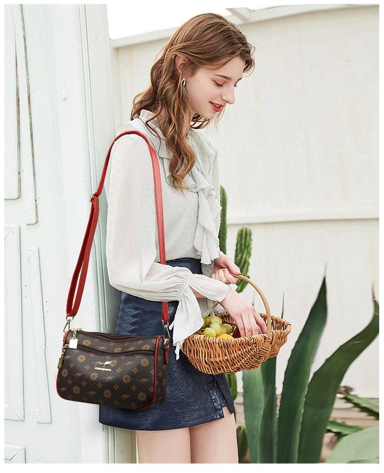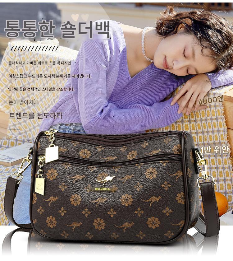 캥거루 여성 가방 정품 가죽 숄더 메신저 가방 2025 새로운 복고풍 스타일 중년 어머니 가방 부드러운 가죽 작은 가방