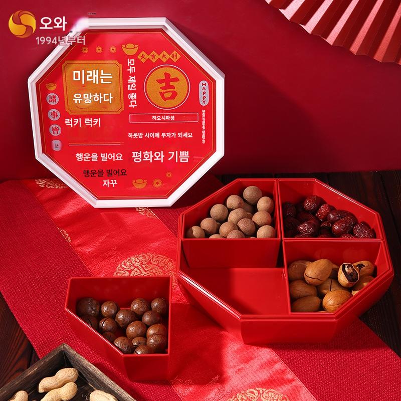 커버 축복 사탕 접시 홈 2025 중국 스타일 거실 커피 테이블 견과류 간식 말린 과일 상자가 있는 새로운 창의적인 구획