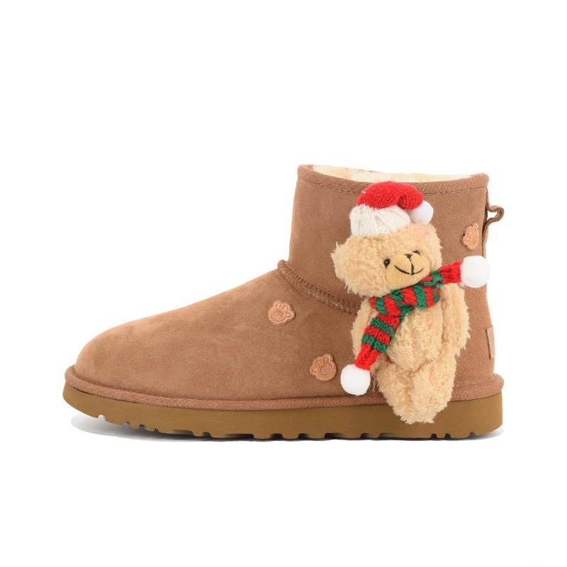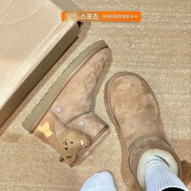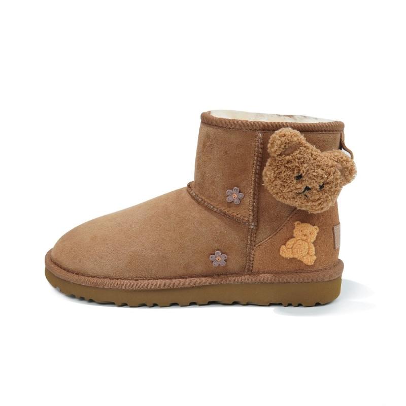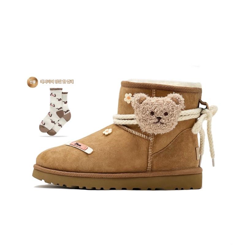 커스텀 스니커즈 UGG CLASSIC MINI 양가죽 플러시 베어 여성 캐주얼 다용도 숏 스노우 부츠