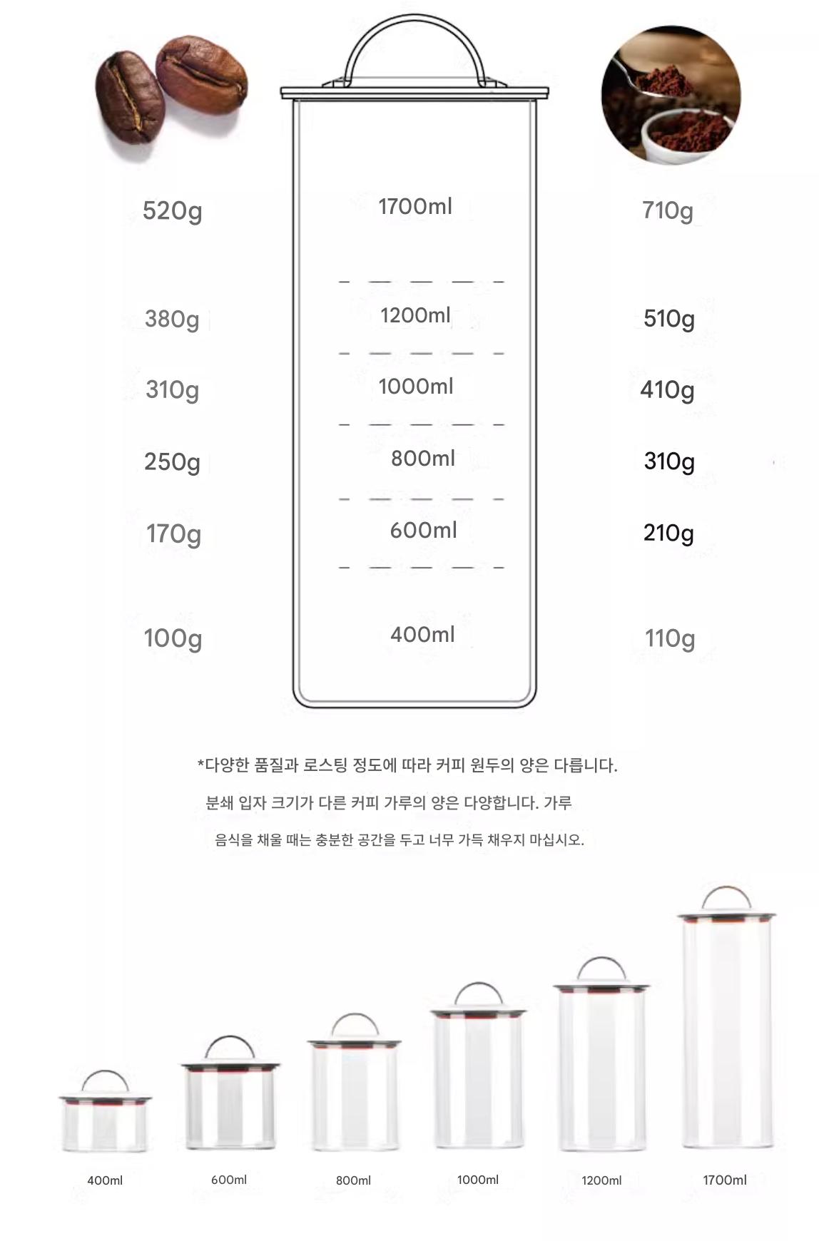 커피콩 보관용기 신선보관함 습기방지 티병 진공식품보관 식품등급 유리밀폐병