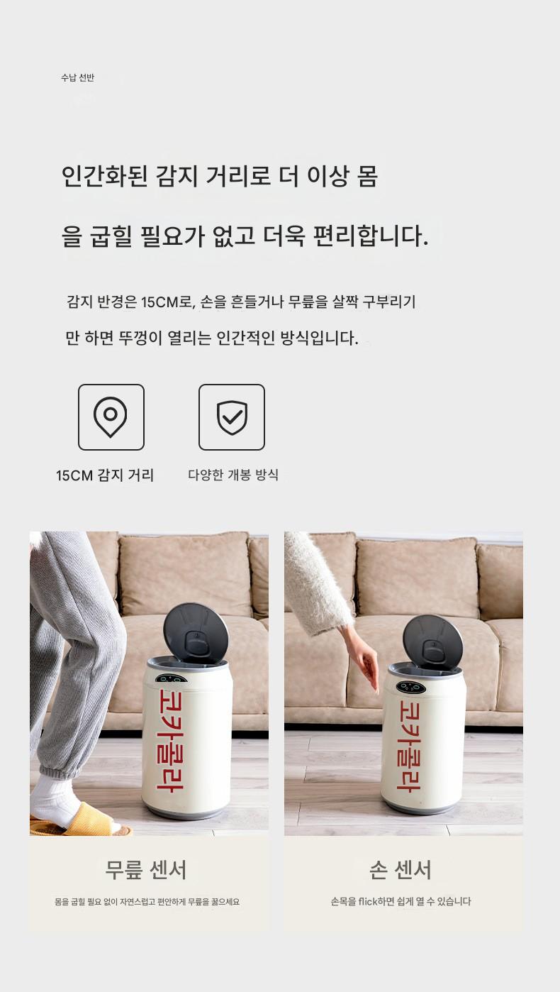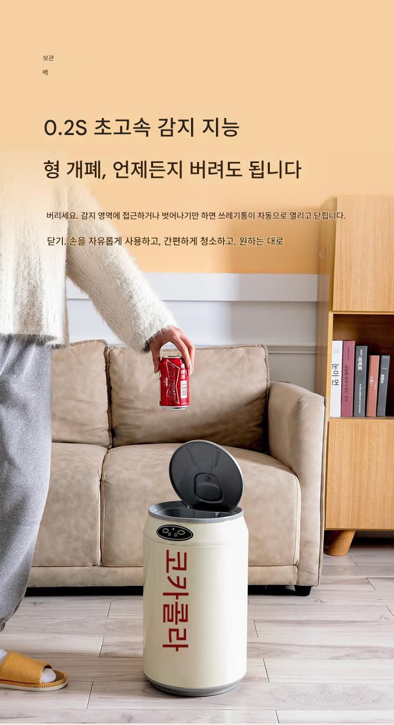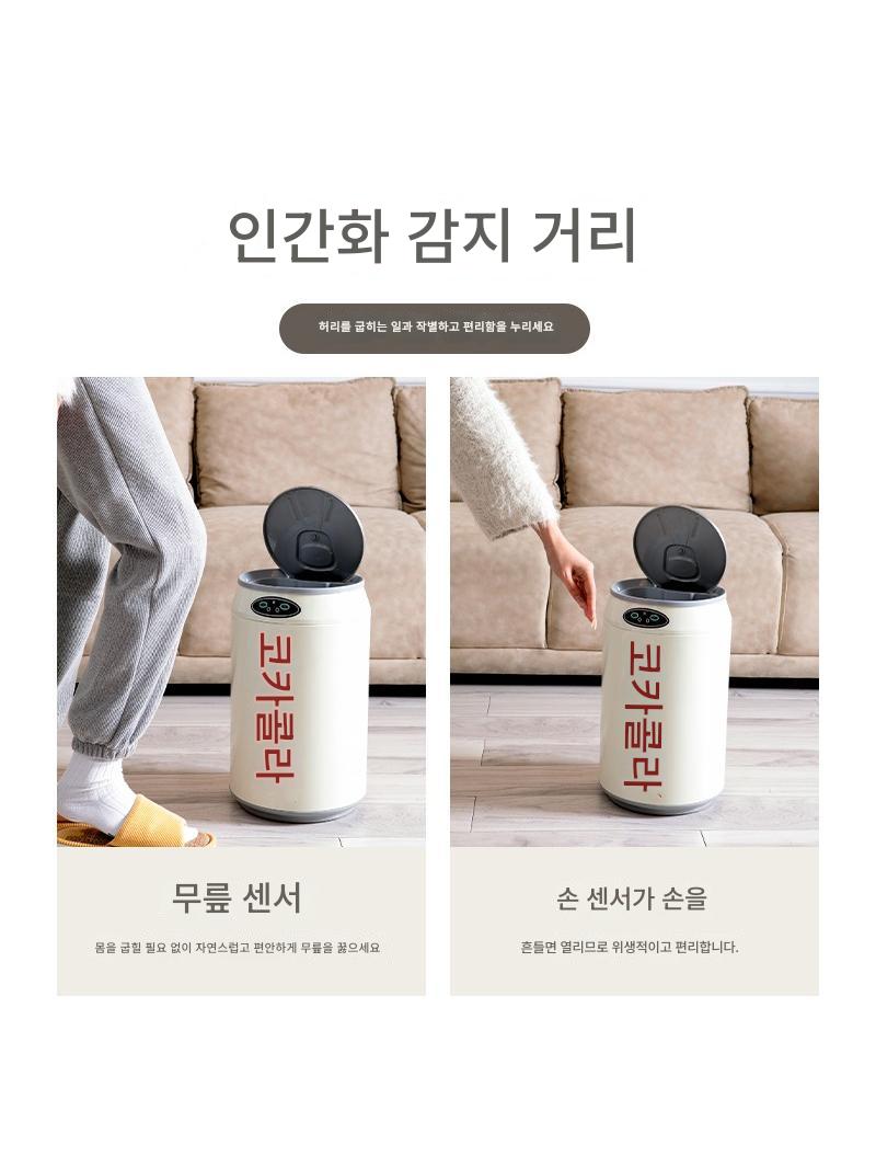 코카콜라 스테인리스 스틸 가정용 스마트 쓰레기통 센서 뚜껑 포함 코카콜라 스타일 주방 침실 욕실 거실