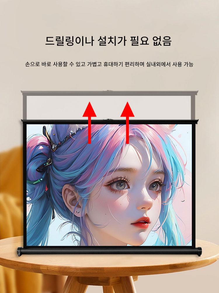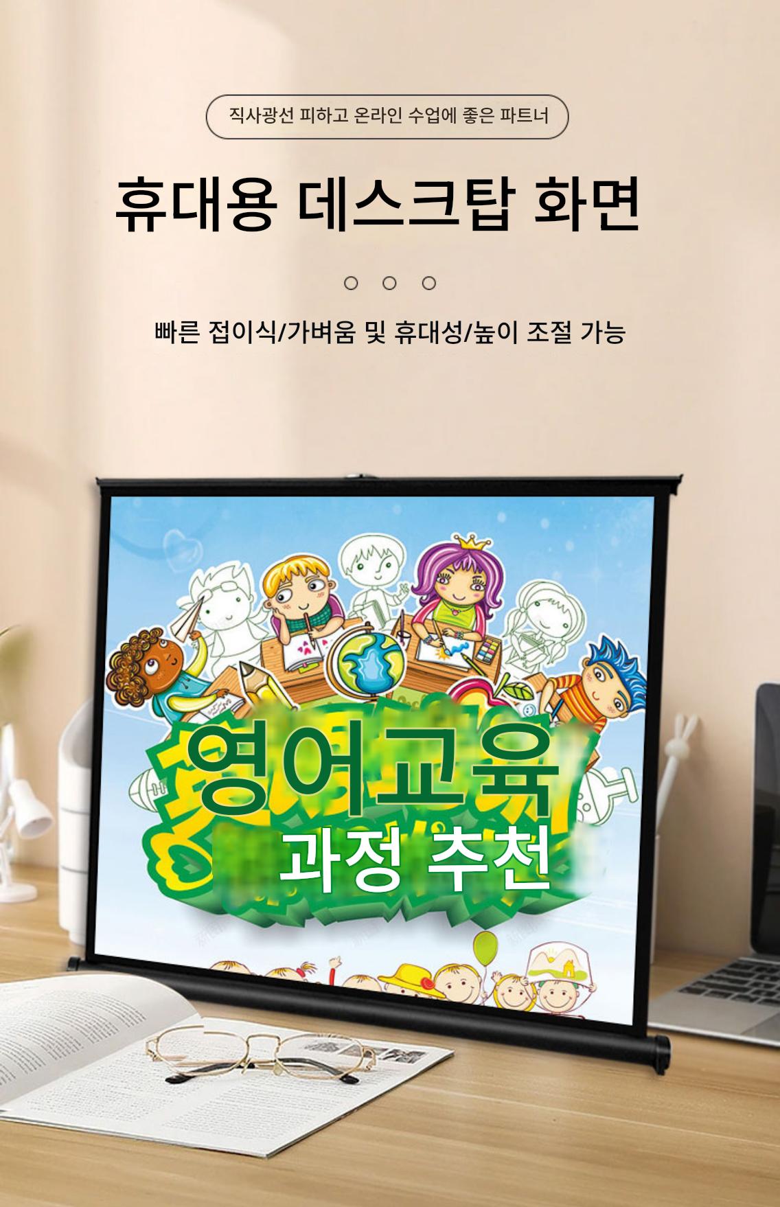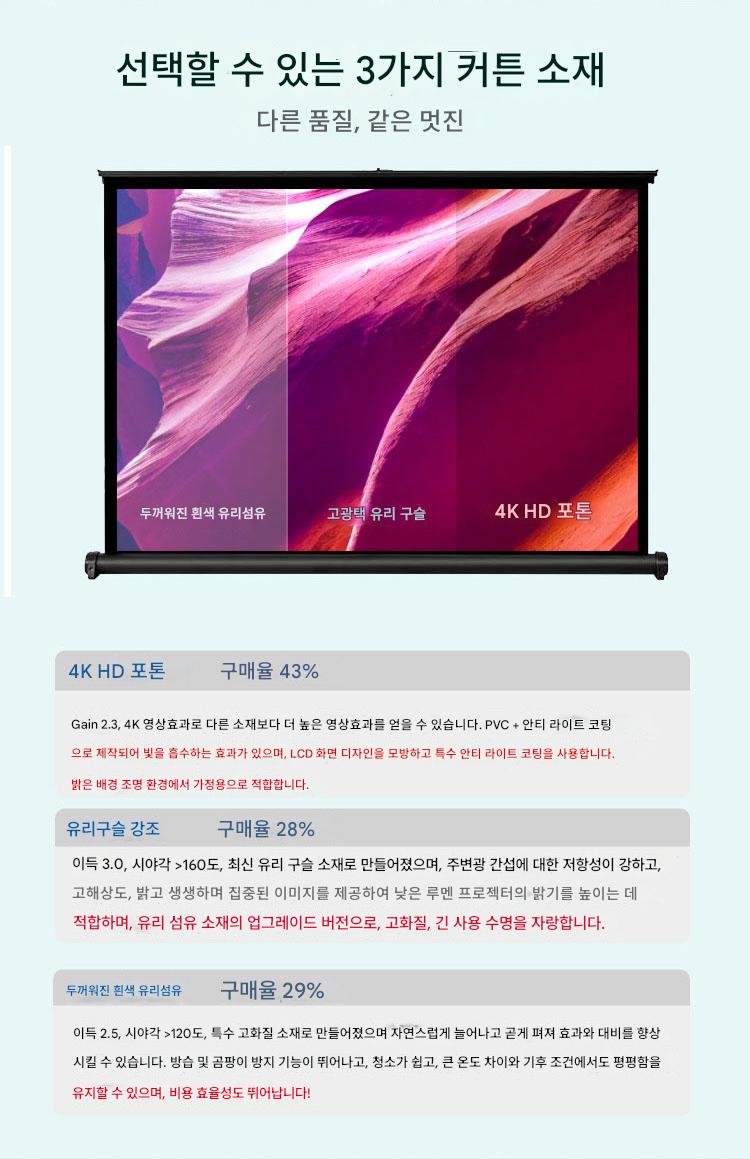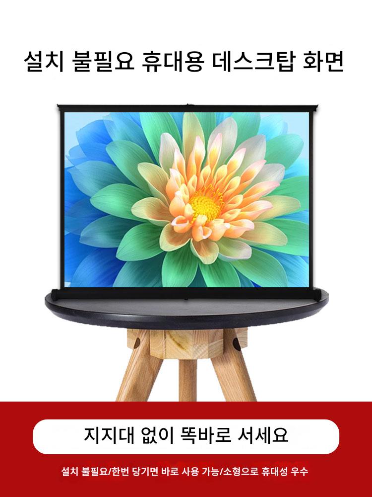 쿠아이고 프로젝터 스크린 휴대용 무료 설치 모바일 데스크탑 스크린 어린이 애니메이션 온라인 수업 눈 보호 4K 고화질 안티라이트 천 30인치 40인치 50인치 4:3/16:9 소형 프로젝터 스크린