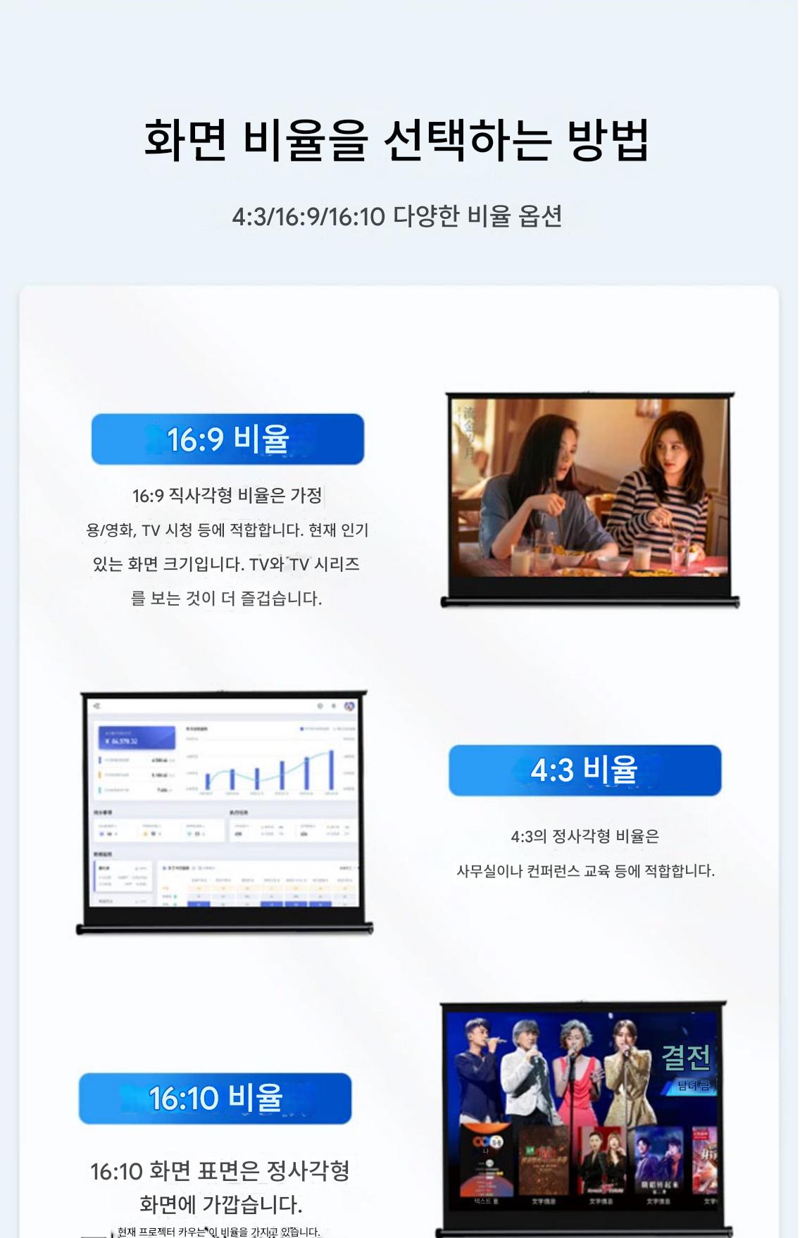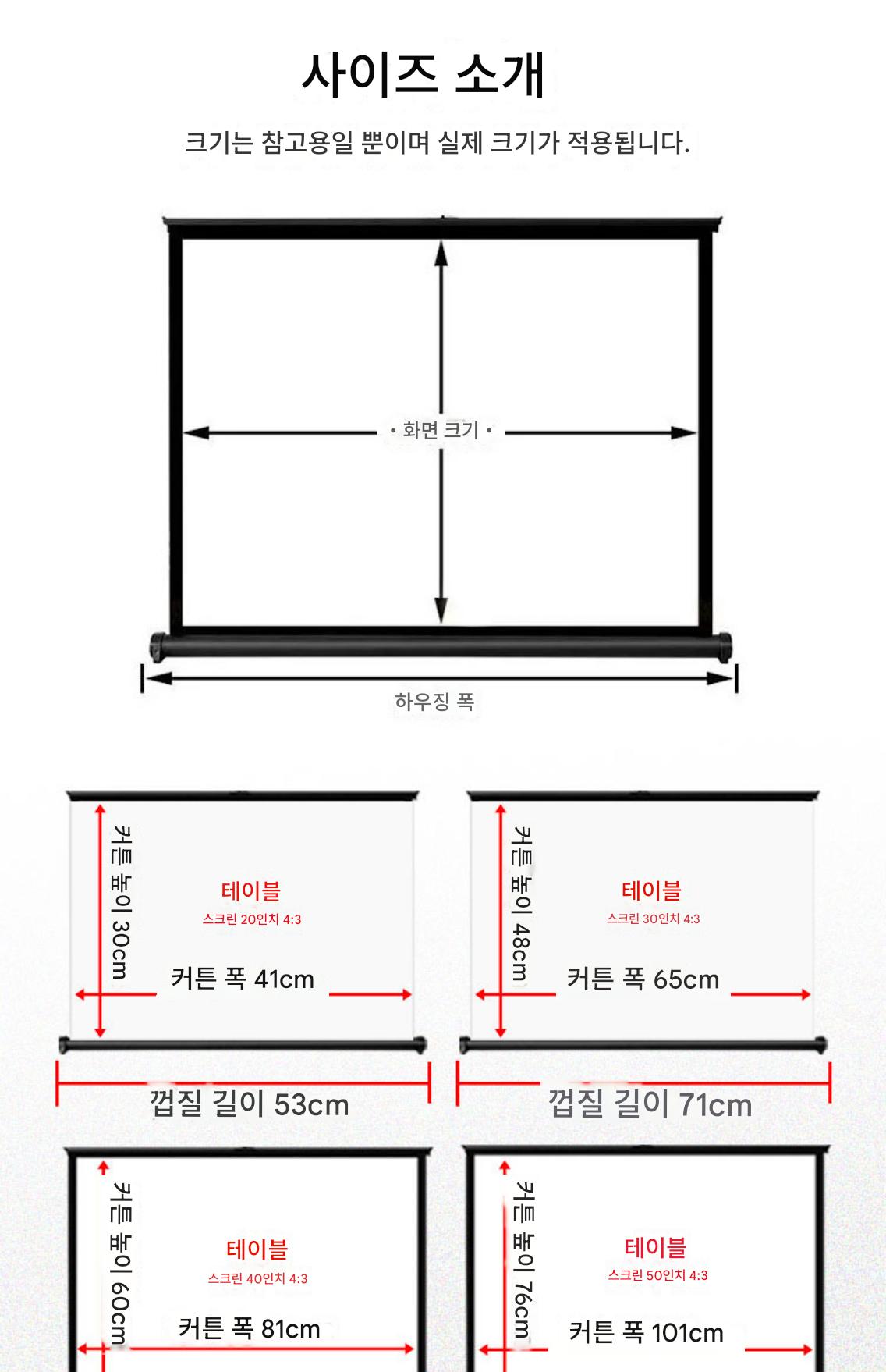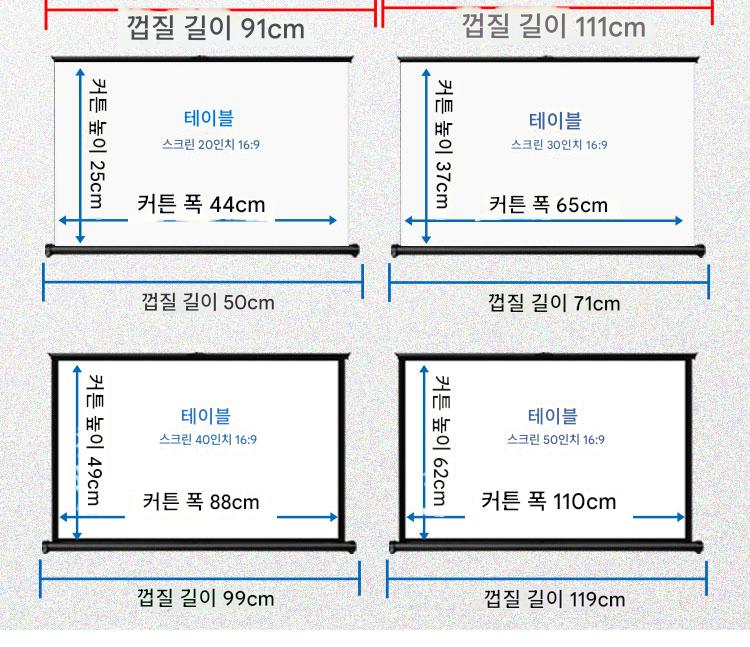 쿠아이고 프로젝터 스크린 휴대용 무료 설치 모바일 데스크탑 스크린 어린이 애니메이션 온라인 수업 눈 보호 4K 고화질 안티라이트 천 30인치 40인치 50인치 4:3/16:9 소형 프로젝터 스크린