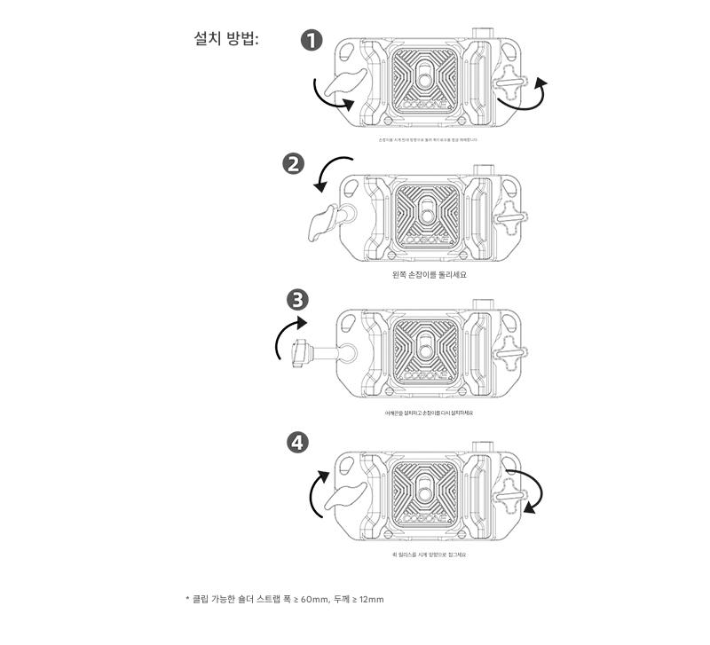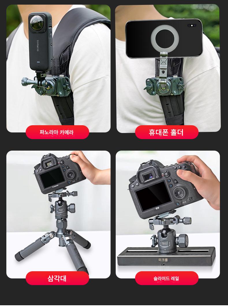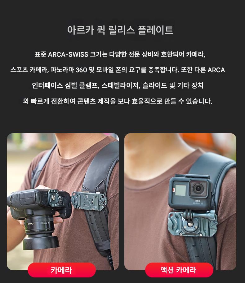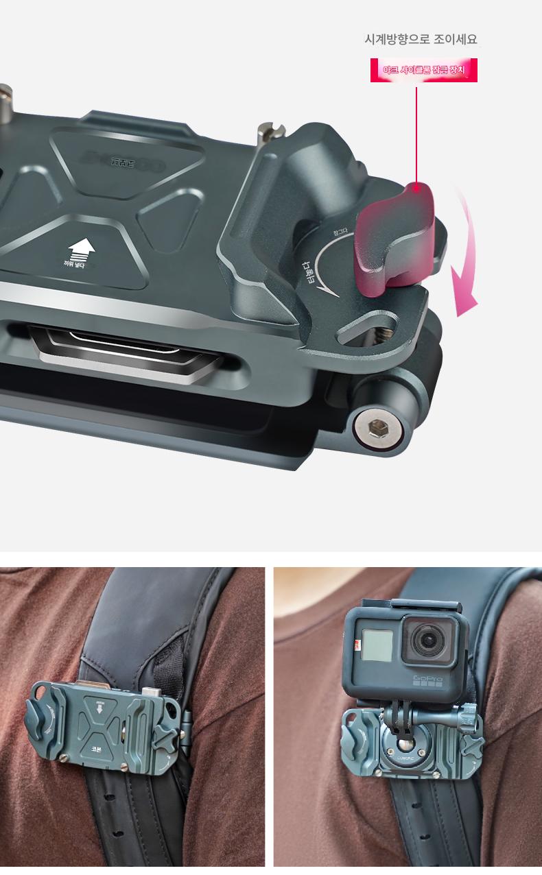 쿨터치 카메라 퀵행거 고프로 DJI 액션4 섀도우스톤 360 백팩 벨트 숄더 스트랩 사진 촬영 퀵 설치 및 제거