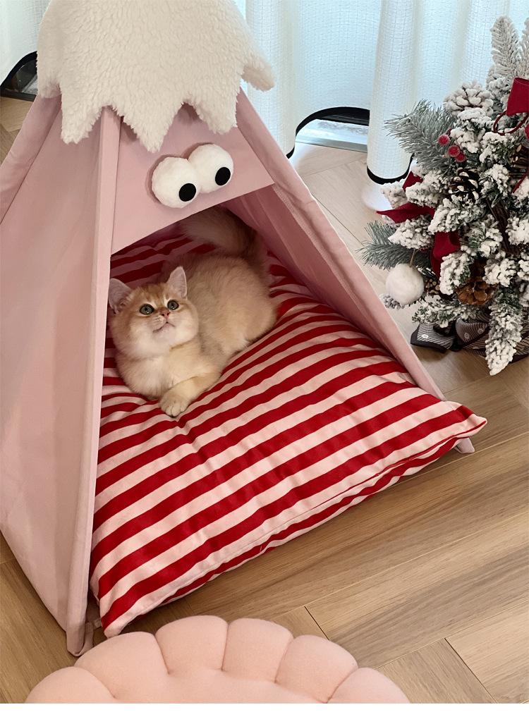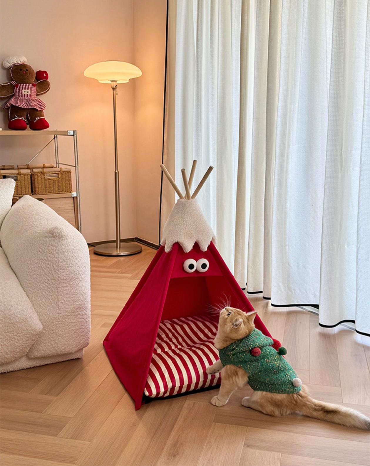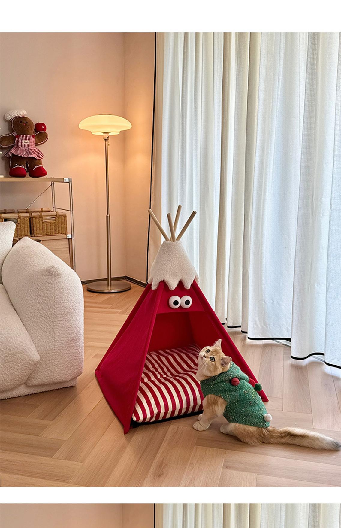 크리스마스 고양이 침대 텐트 고양이 침대 애완견 강아지 침대 겨울 따뜻한 반밀폐형 안전감