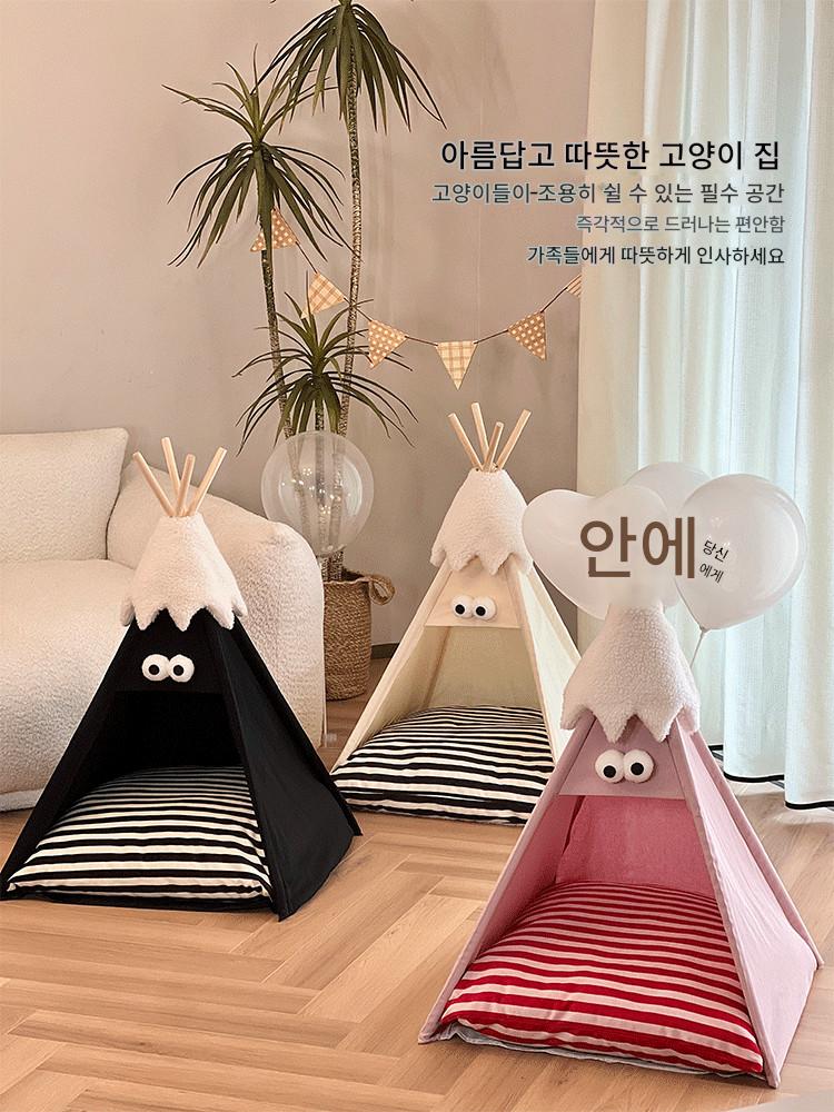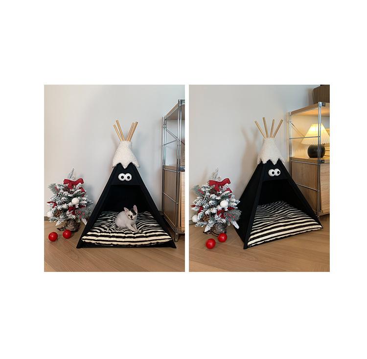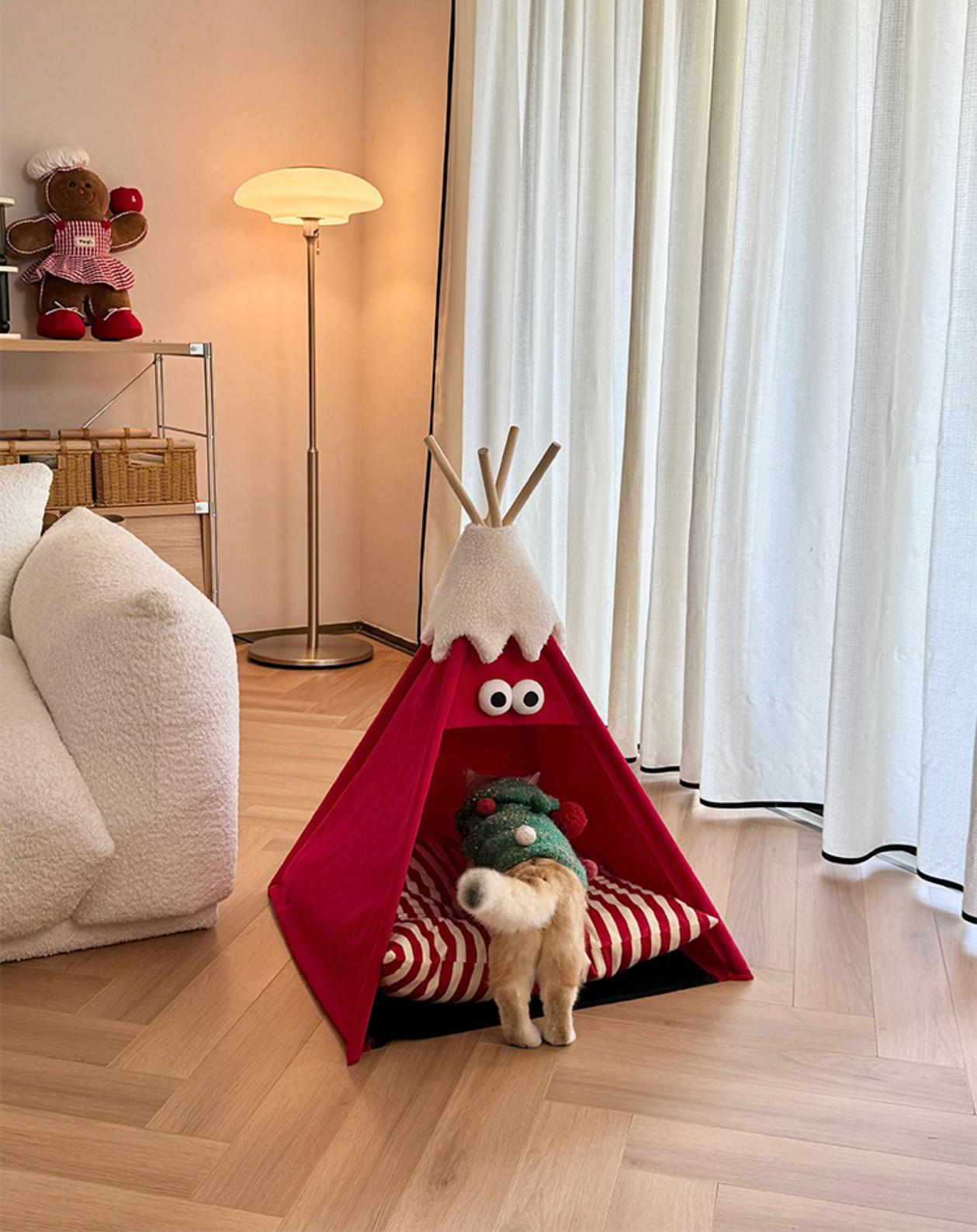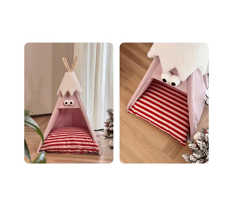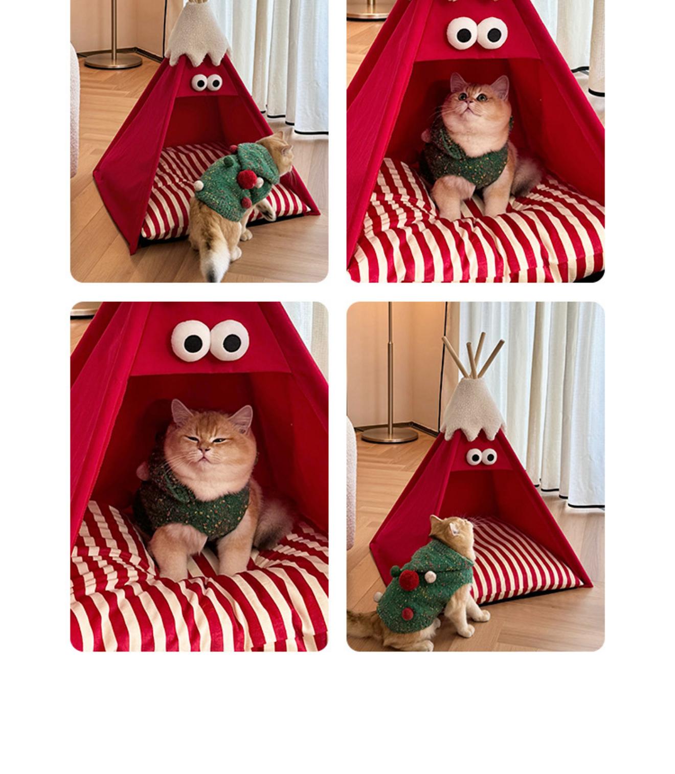 크리스마스 고양이 침대 텐트 고양이 침대 애완견 강아지 침대 겨울 따뜻한 반밀폐형 안전감