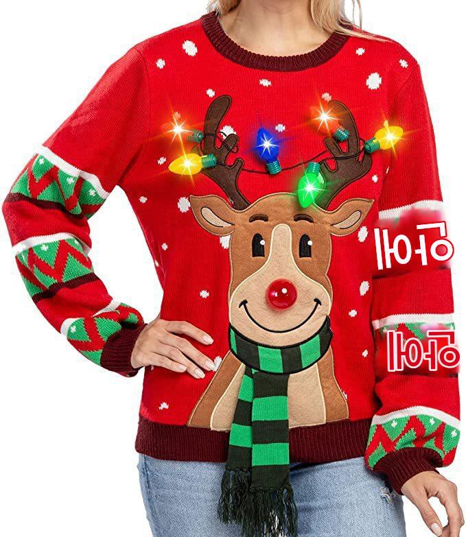 크리스마스 엘크 니트웨어 크리스마스 엘크 니트웨어 크리스마스 분위기 스웨터 (E 라이트 포함)