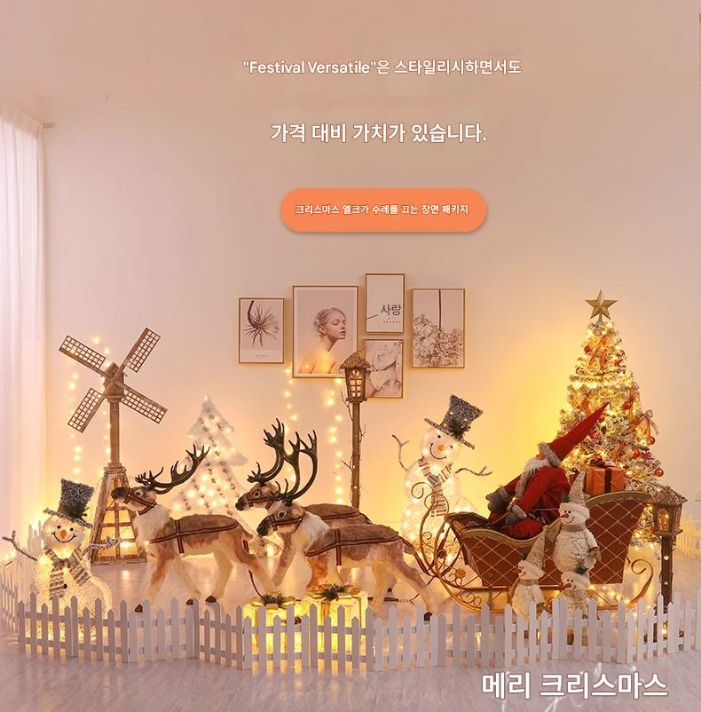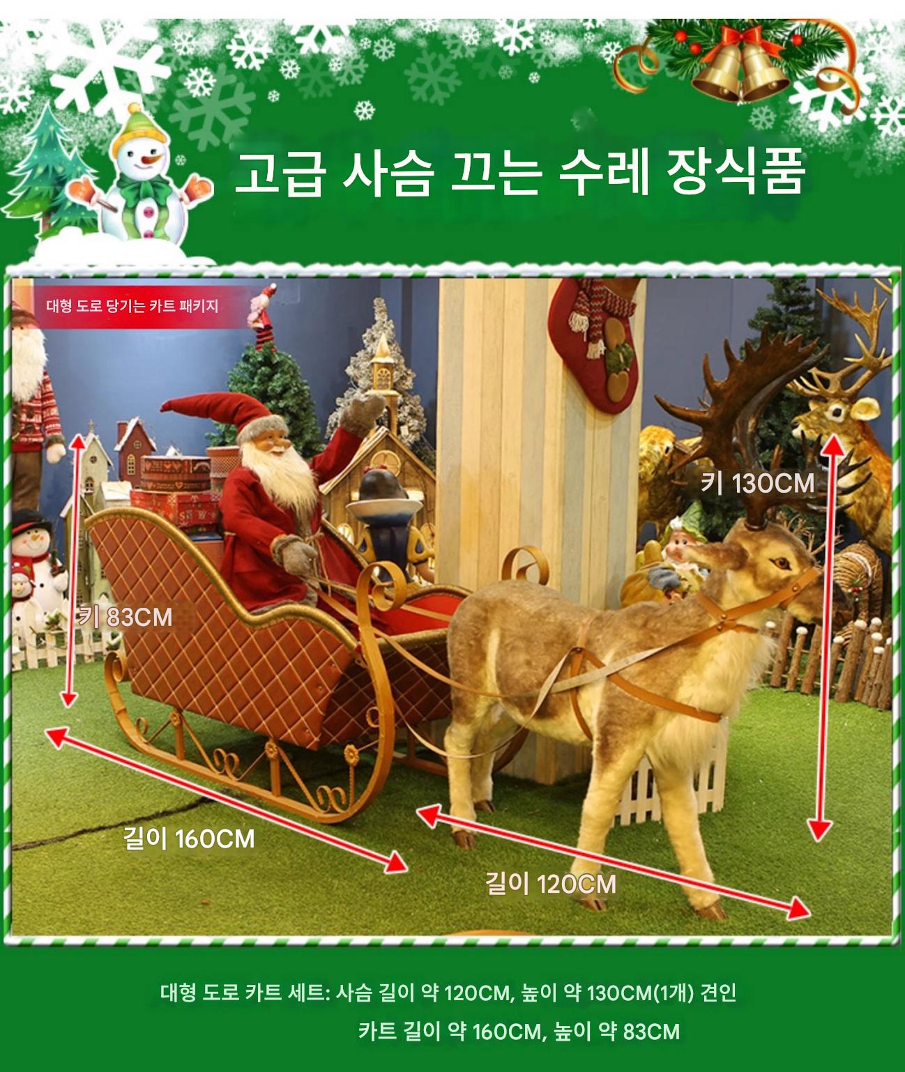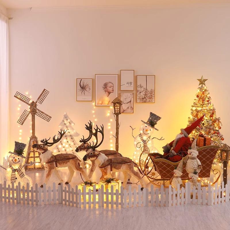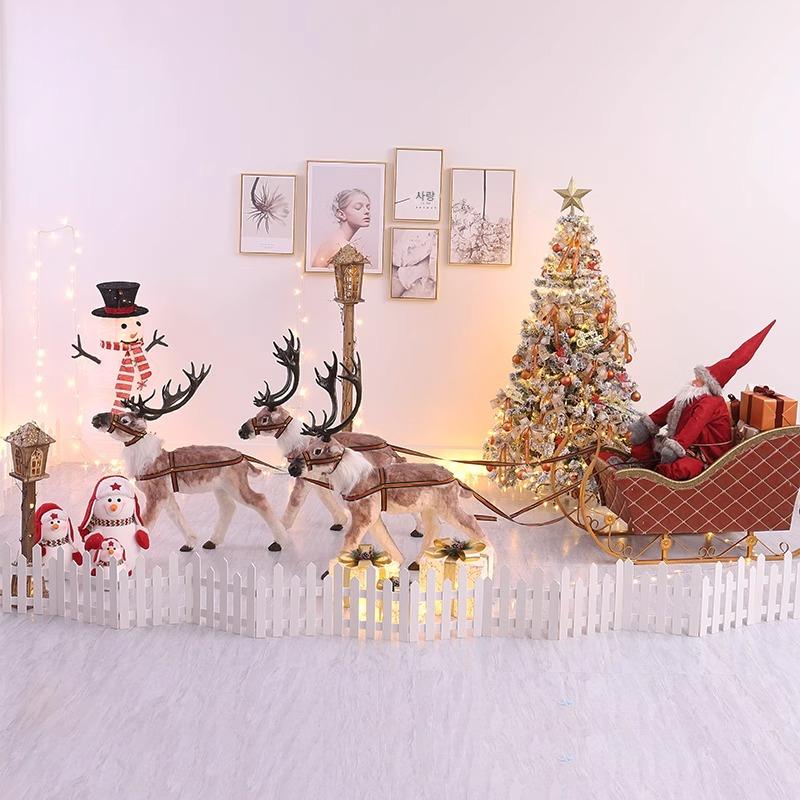 크리스마스 장식 대형 사슴 끄는 수레 빛나는 엘크 봉제 사슴 철 썰매 대형 크리스마스 장면 레이아웃