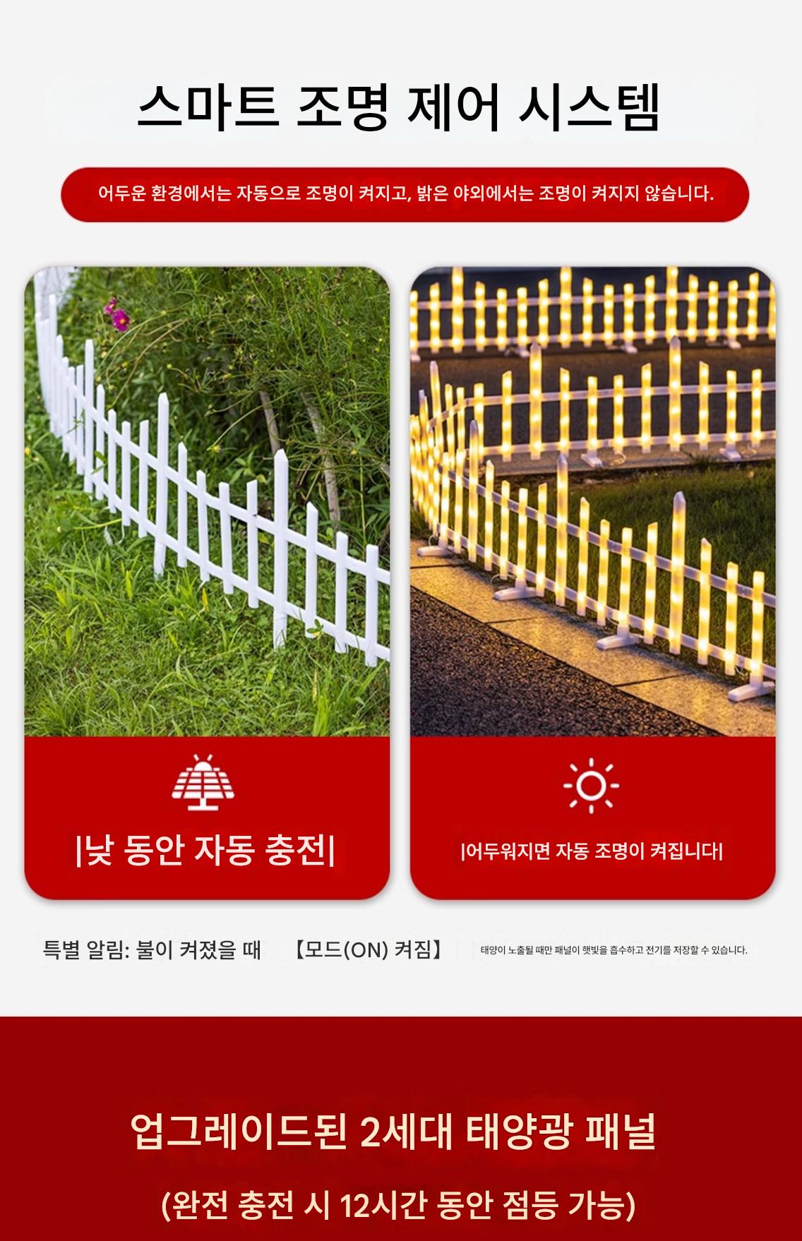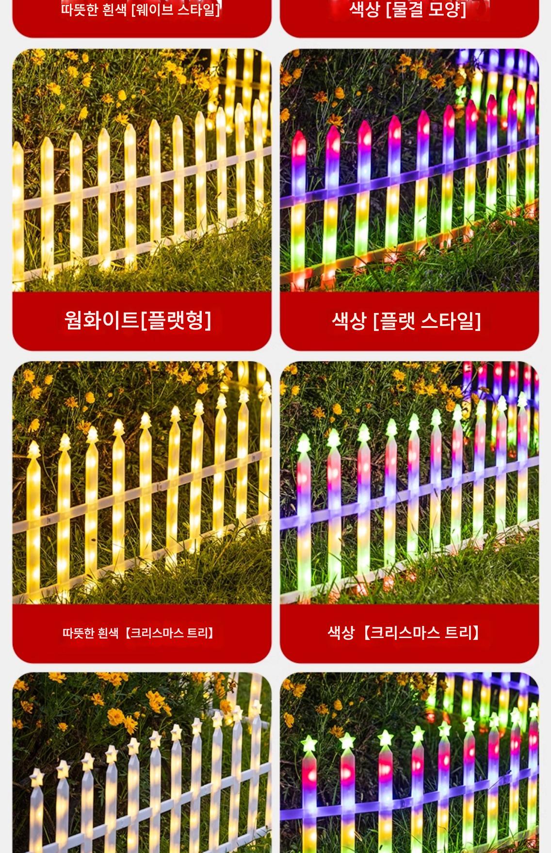 크리스마스 장식 새해 빛나는 울타리 조명 야외 장면 레이아웃 크리스마스 트리 장식 소품 가드레일 태양열 발전