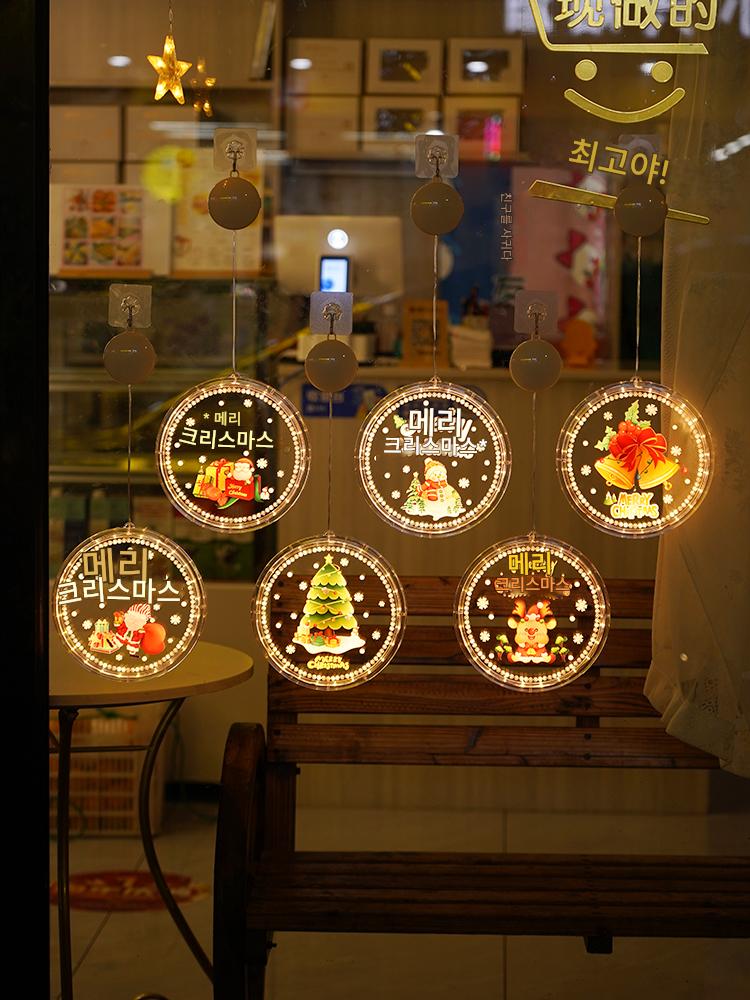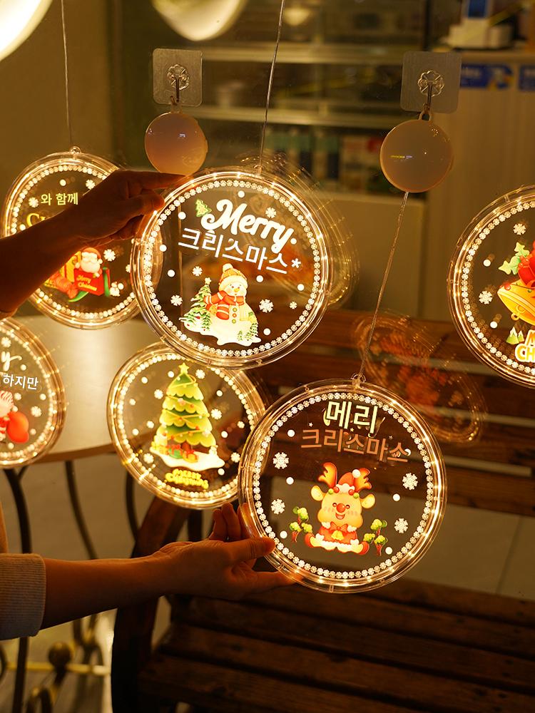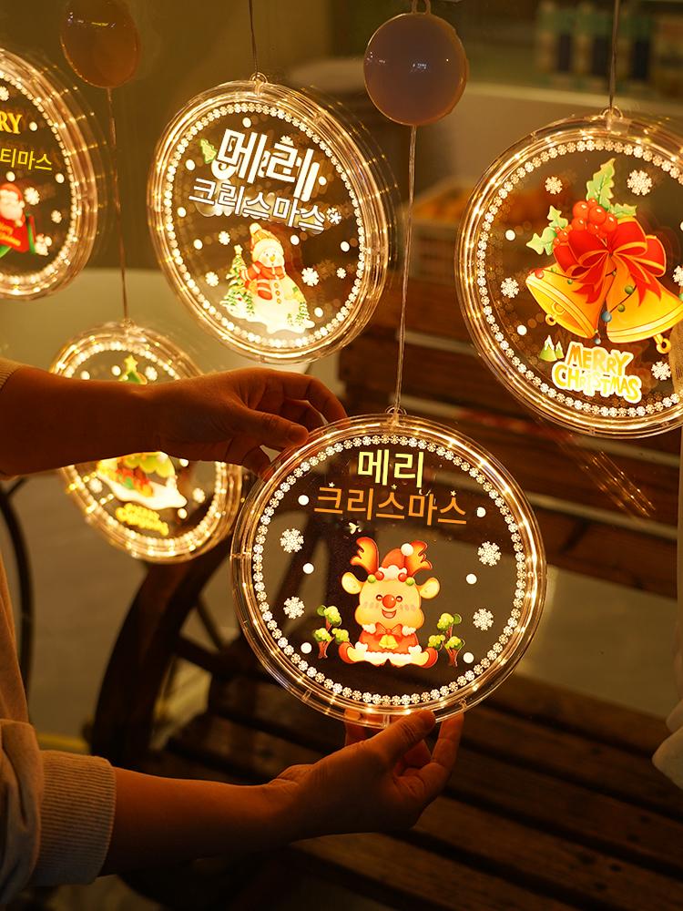 크리스마스 LED 장식용 발광 도어 걸이 크리스마스 트리 쇼핑몰 창문 분위기 조명 페인트 원형 흡착식 걸이 조명