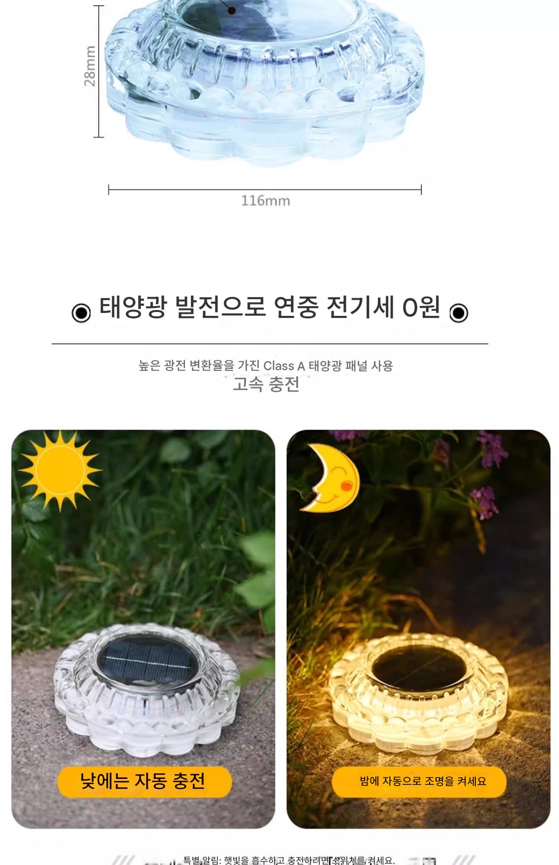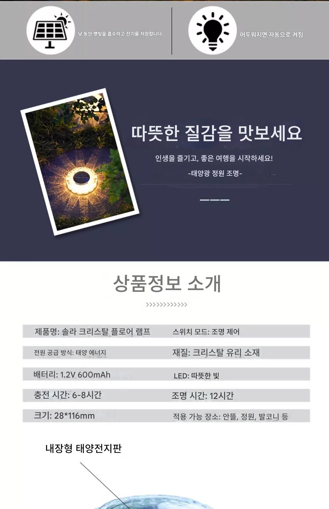 크리스탈 유리 지면등 태양광 지면등 야외 안뜰 방수 잔디밭 계단 테라스 정원 조경 매립등