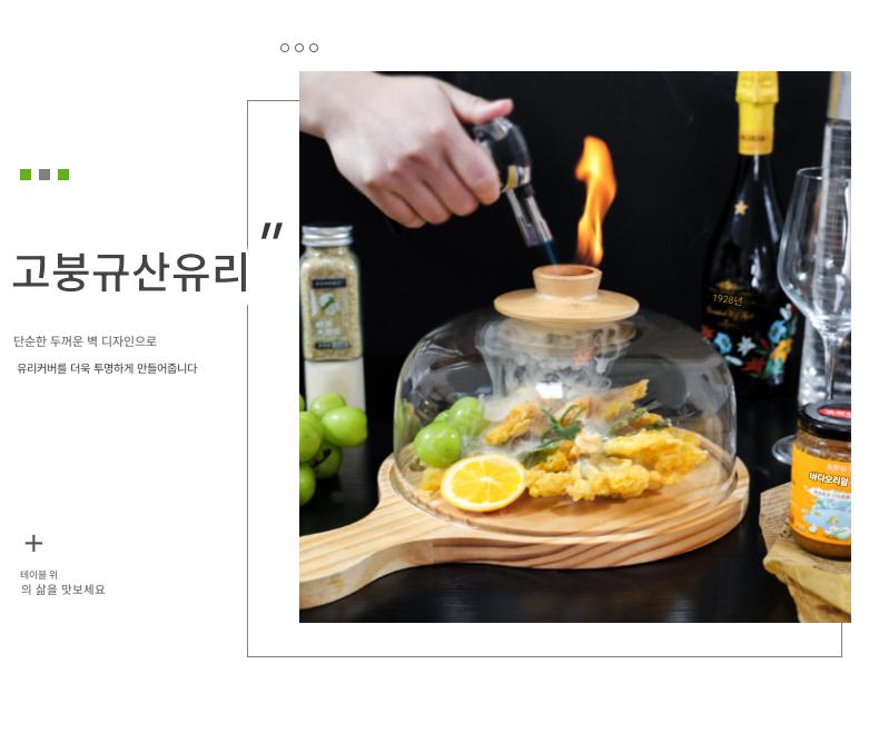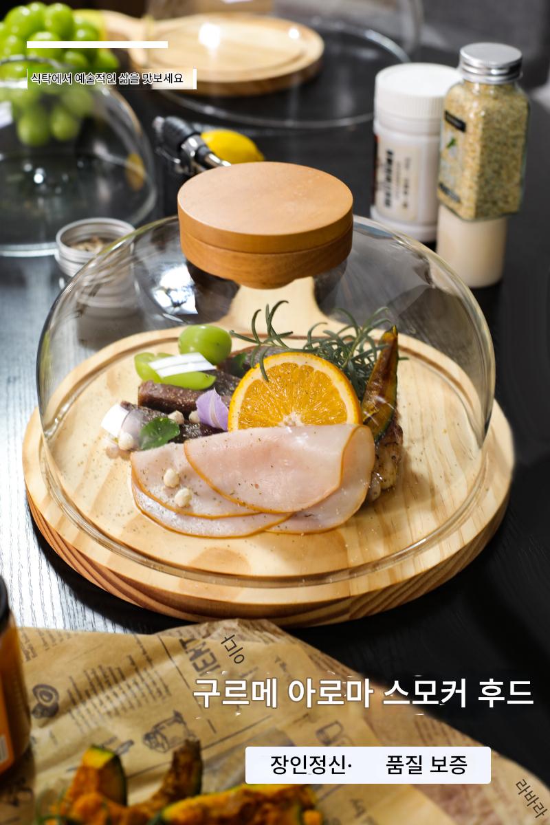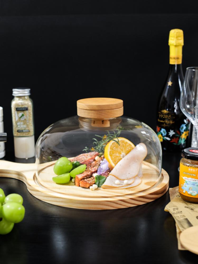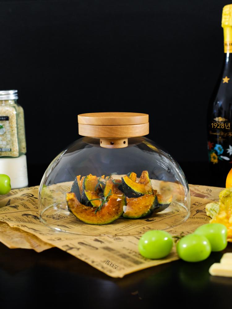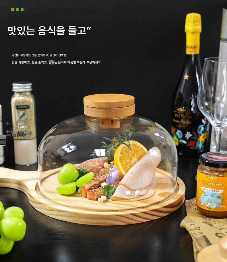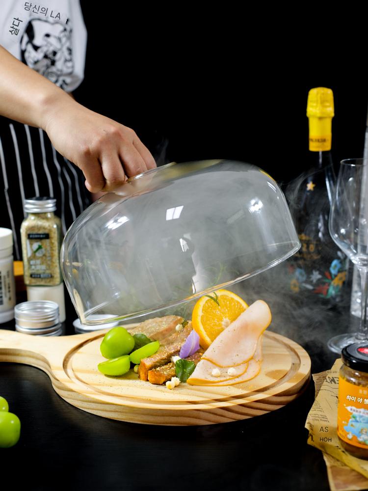 크리에이티브 분자요리 간식 고온 내성 투명 훈제 유리 커버 훈제 식품 커버 손잡이 나무 접시 식기