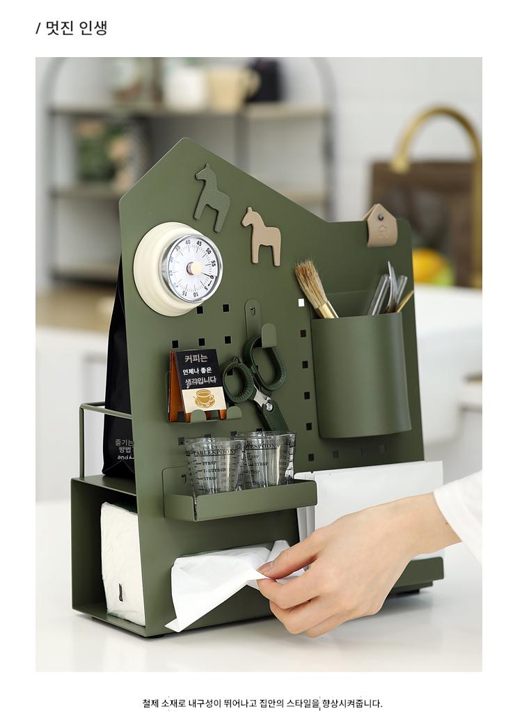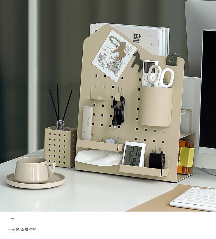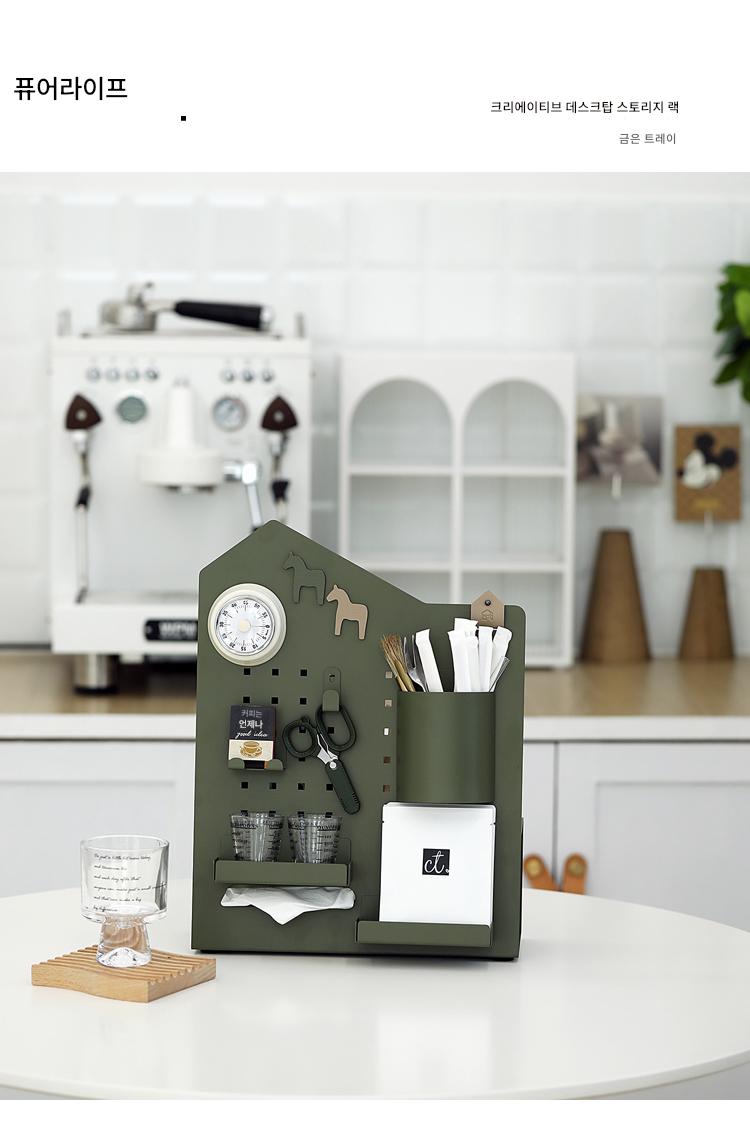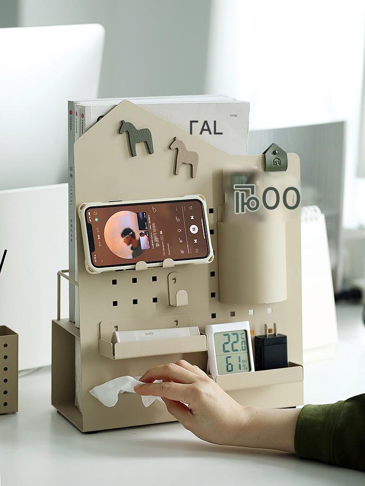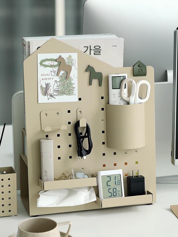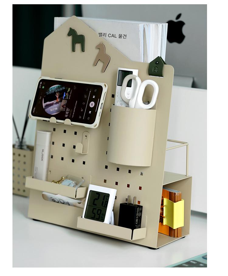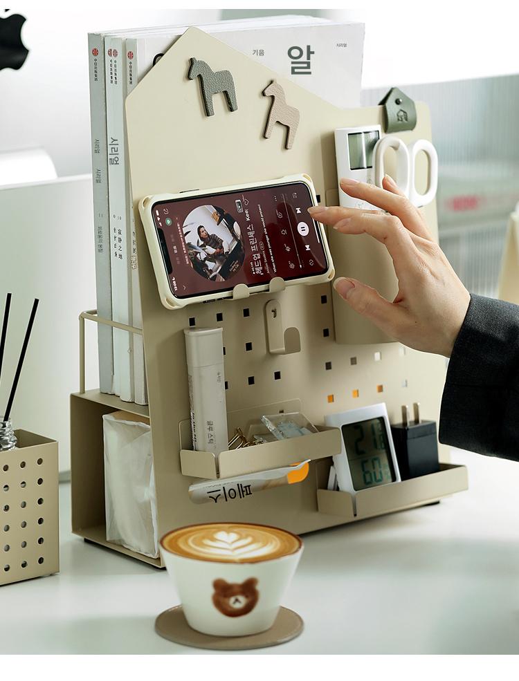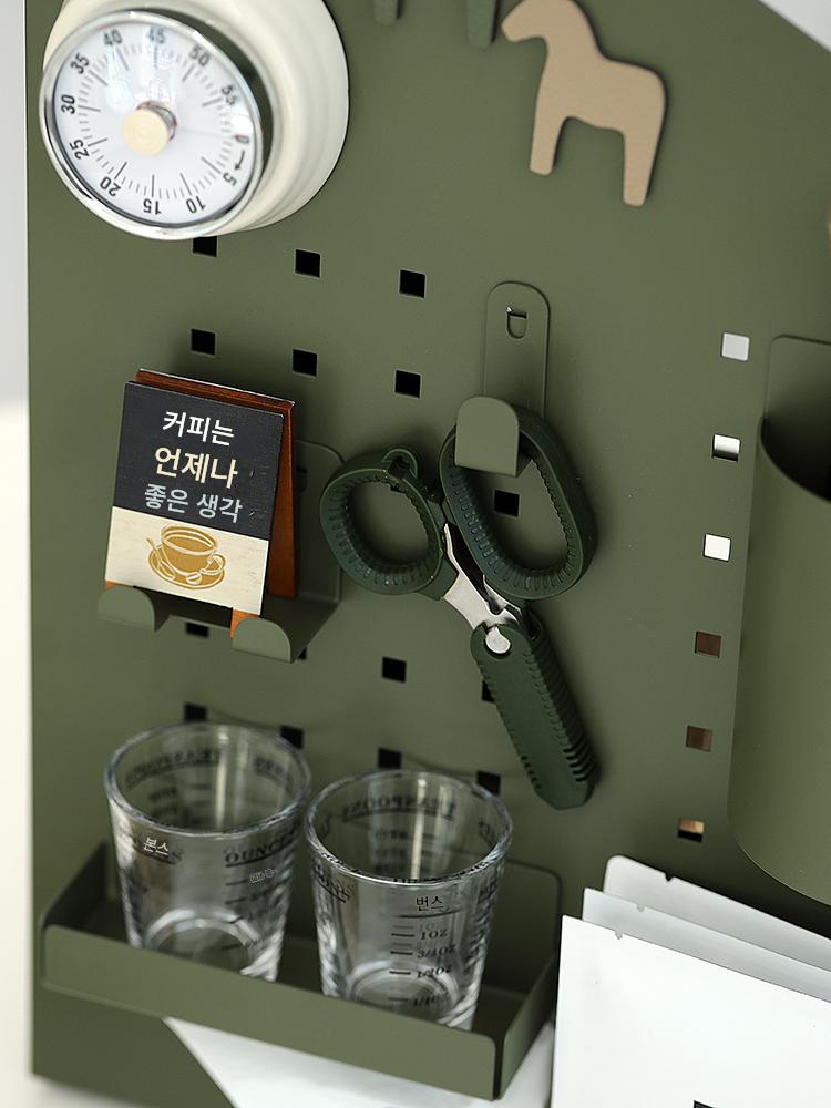 크리에이티브 철제 구멍판 다목적 수납 선반 다크그린 밀크티 다기능 수납 선반 데스크탑 잡화 수납 선반