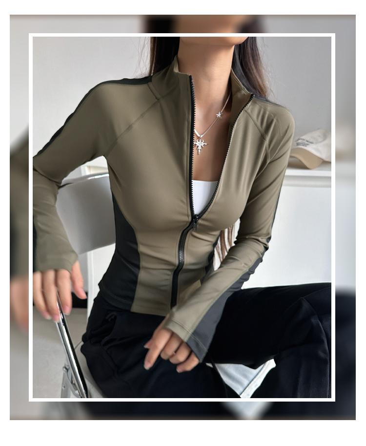 클라우드 쉘 지퍼 스탠드 칼라 컬러블록 피트니스 의류 여성 쿨 개인화 요가 상의 러닝 트레이닝 스포츠 재킷