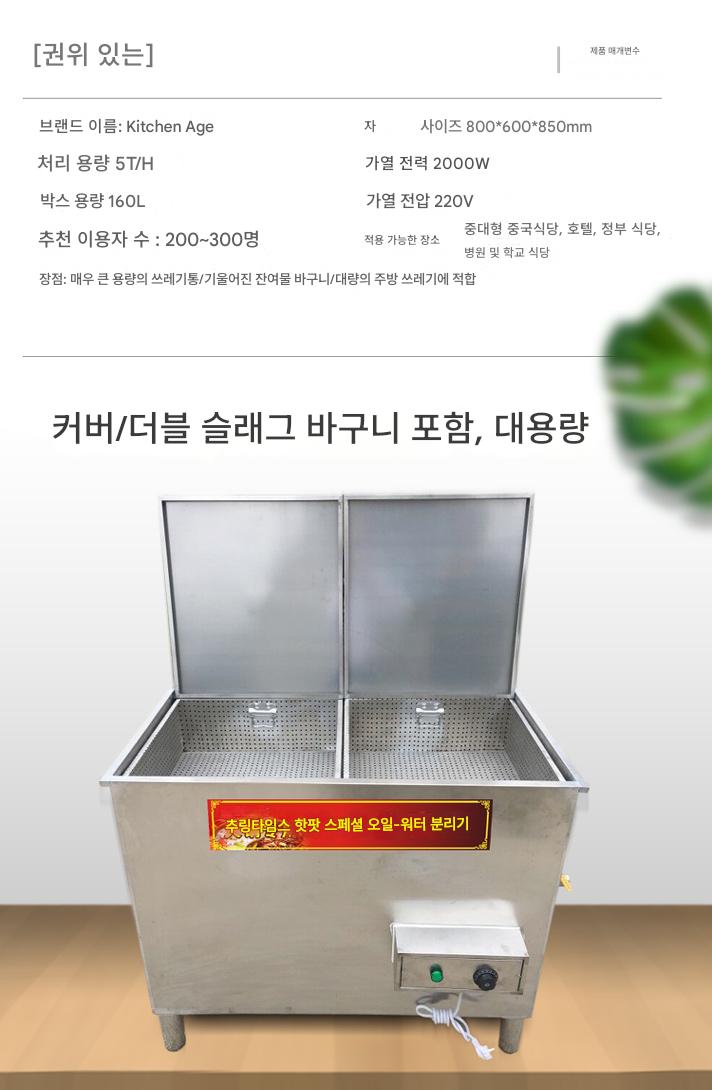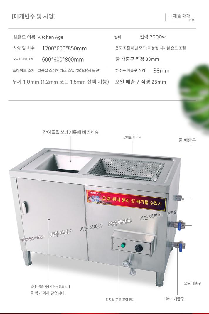 키친리더 시대 핫팟 오일-워터 세퍼레이터 필터 그리스 트랩 케이터링 스테인리스 올인원 머신 자동 오일 배출