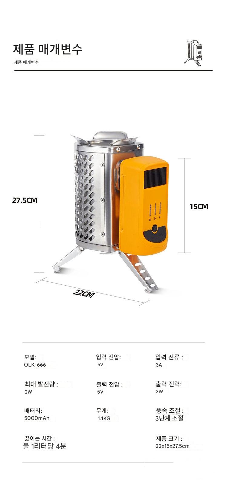 탄니아오 화력발전 나무 난로 접이식 충전식 야외 피크닉 난로 스테인리스 스틸 휴대용 캠핑 난로