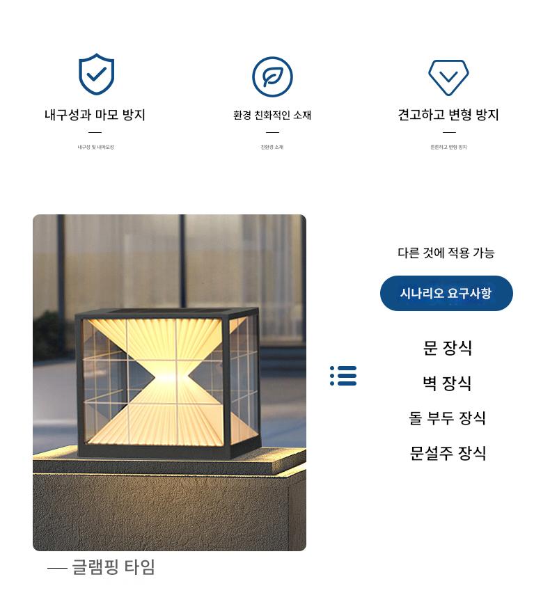 태양광 기둥 헤드라이트 야외 정원 조명 야외 방수 빌라 게이트 기둥 조명 기둥 조명 벽 게이트 헤드라이트