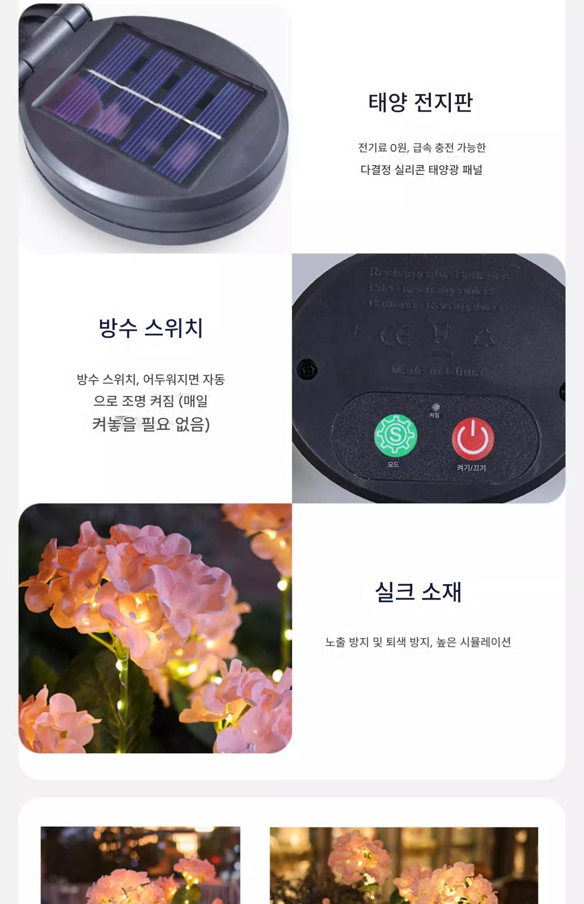 태양광 정원 조명 야외 방수 빌라 조경 잔디 정원 발코니 장식 접지 플러그 수국 시뮬레이션 랜턴