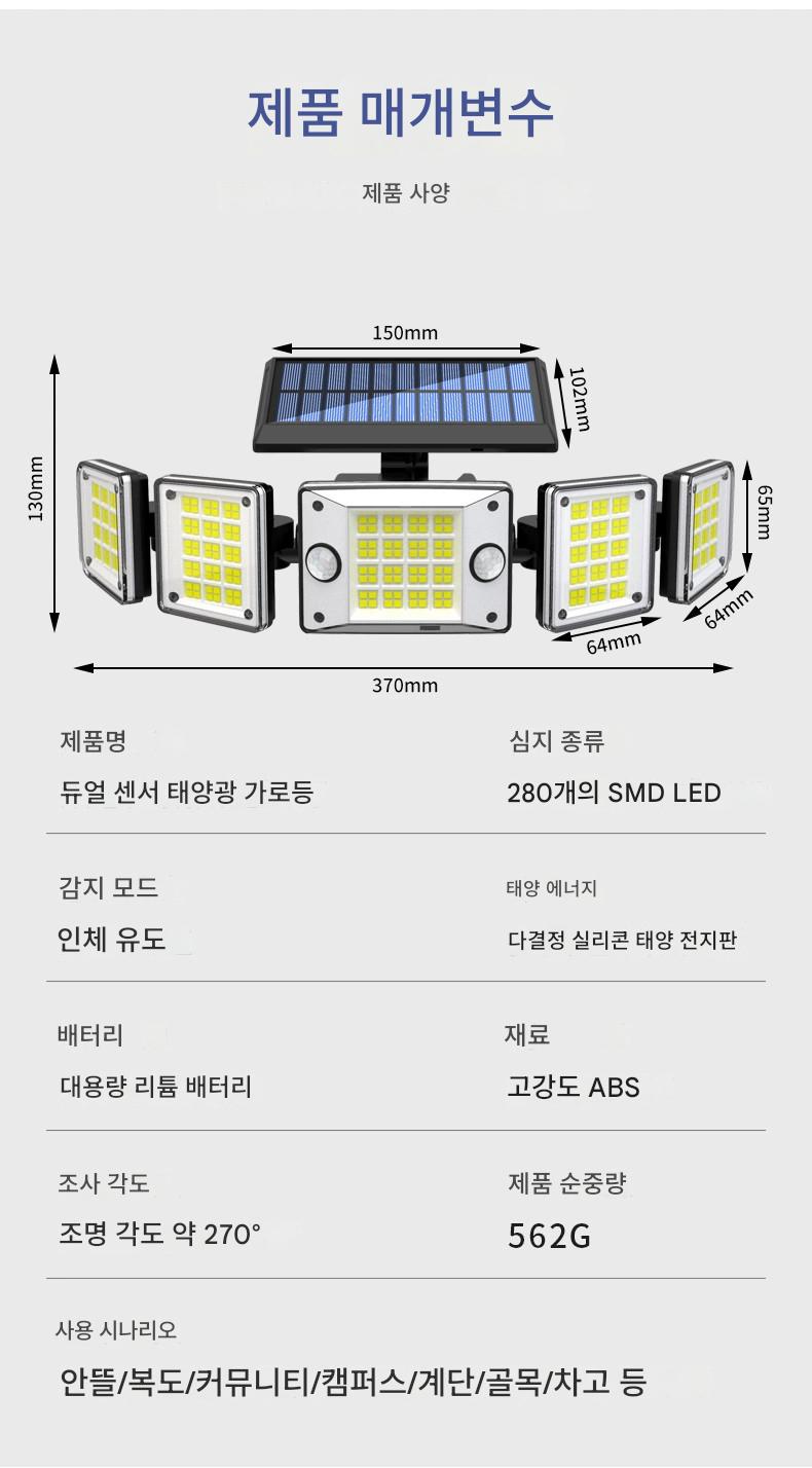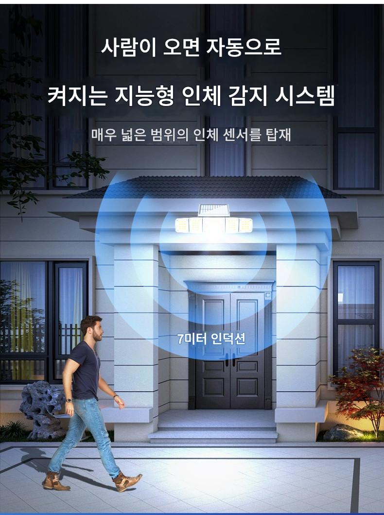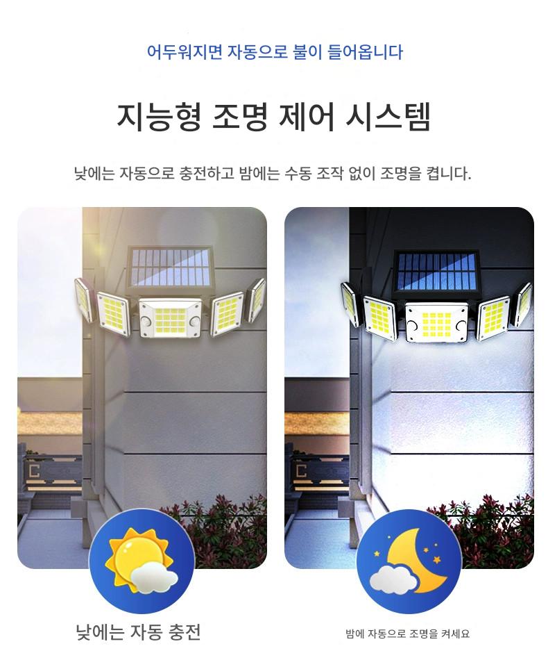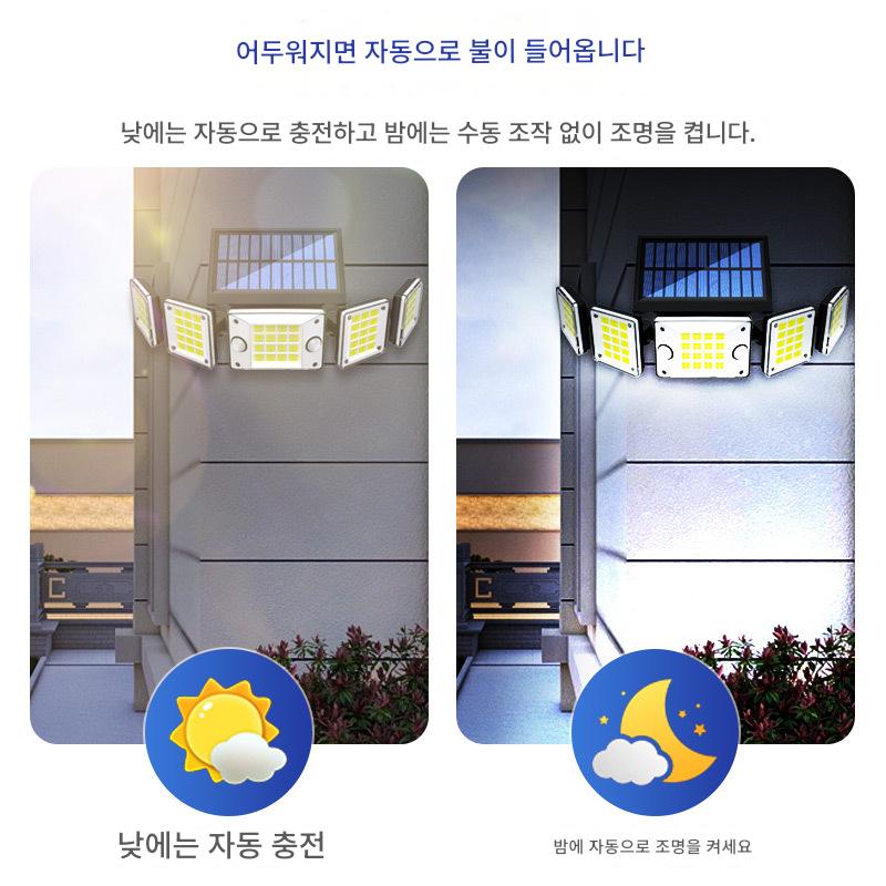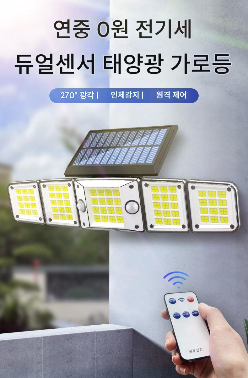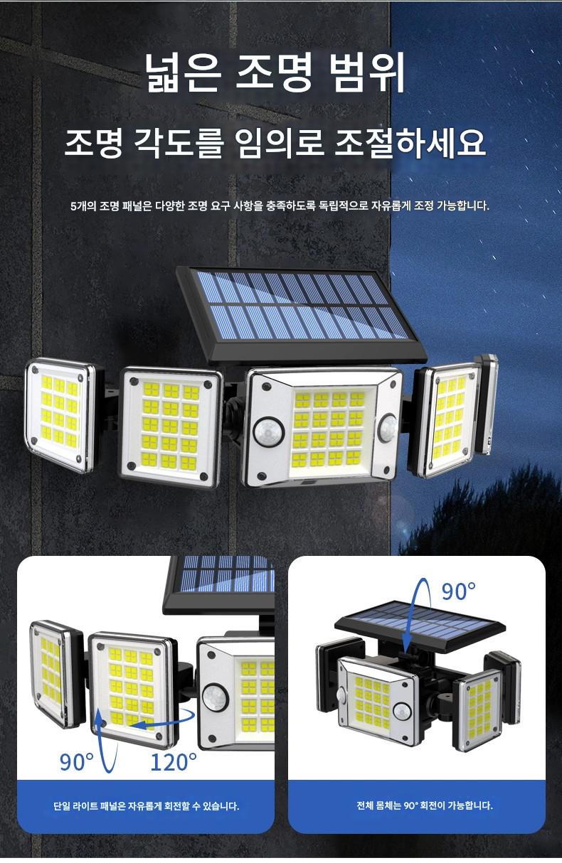 태양광 초고휘도 5개 헤드 벽등 야외 방수 인체 유도 정원등 공원 정원 호텔 빌라 가로등