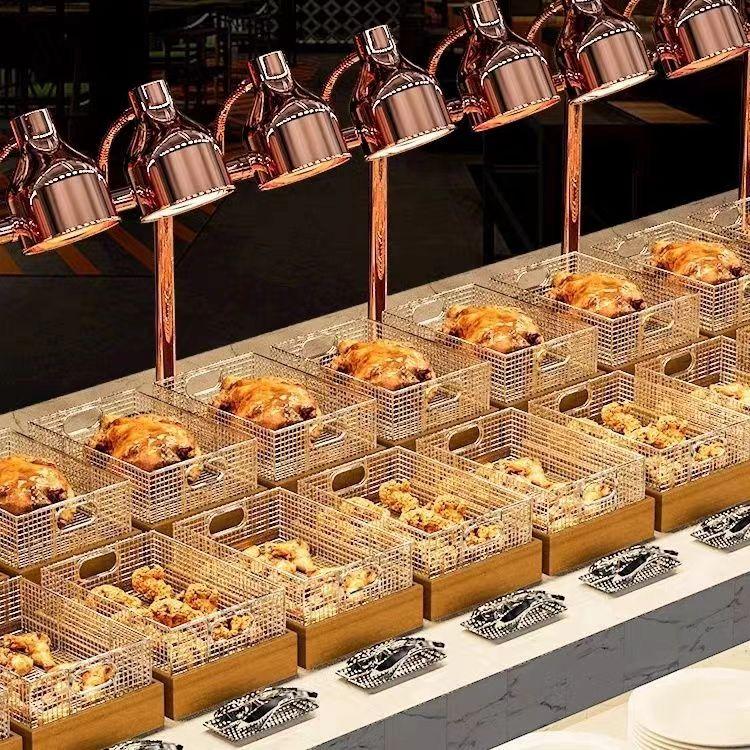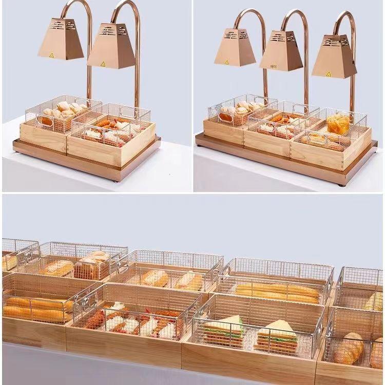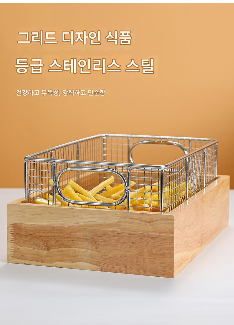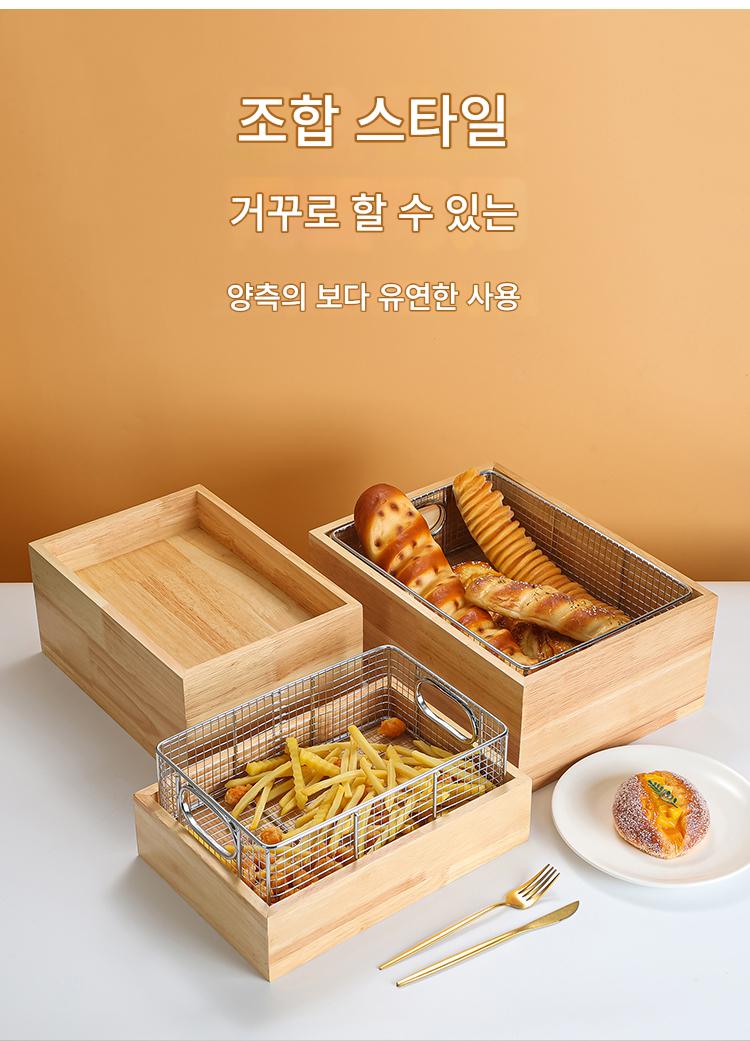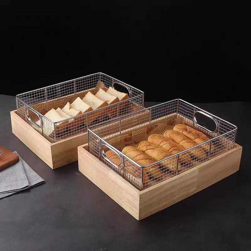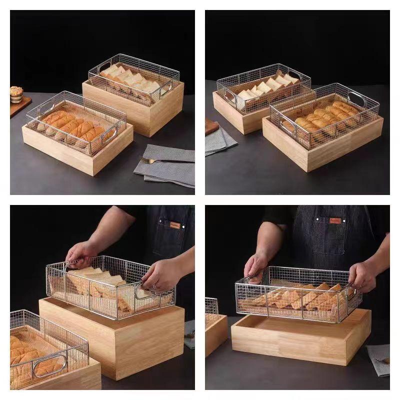 테빈 상업용 뷔페 튀긴 음식 디스플레이 스탠드 나무 쟁반 스테인리스 스틸 과일 빵 바구니 오픈 파일 튀긴 식기 쟁반