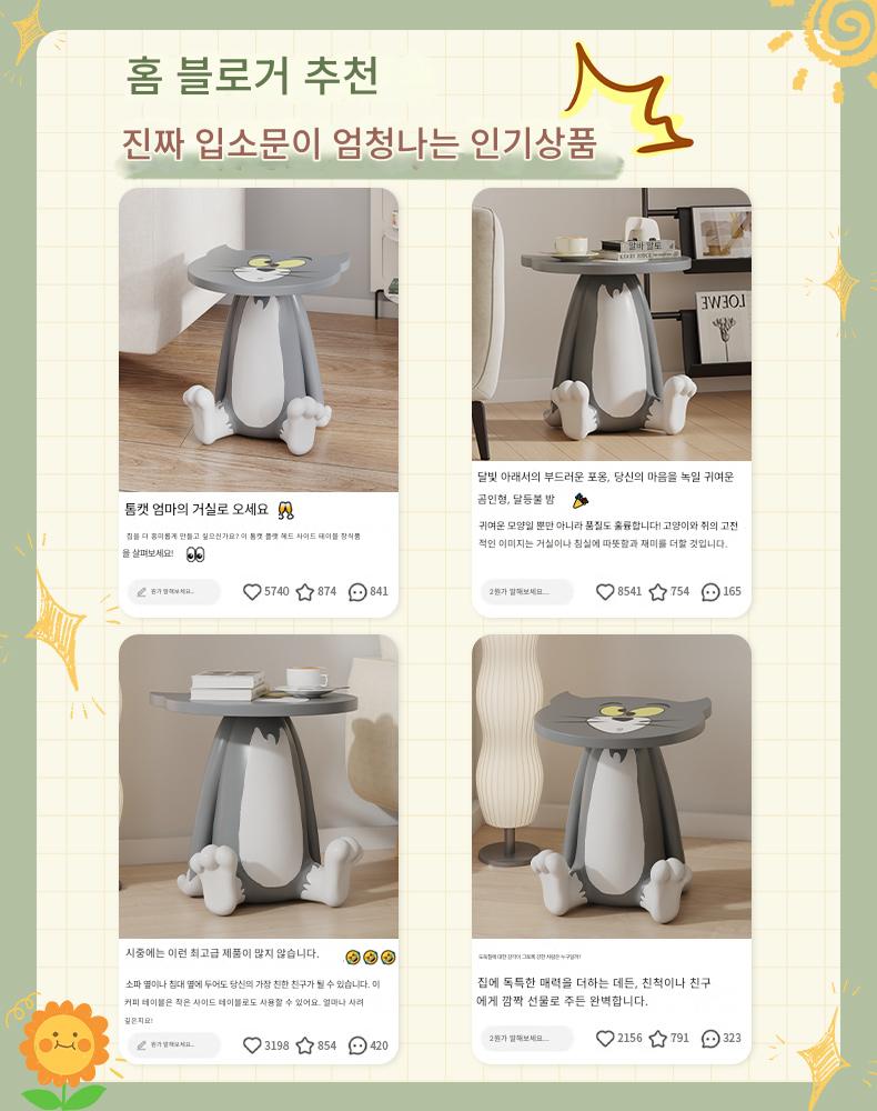 톰캣 커피 테이블 장식 바닥 소파 사이드 테이블 귀여운 가정용품 크리에이티브 만화 침대 옆 테이블 입주 선물