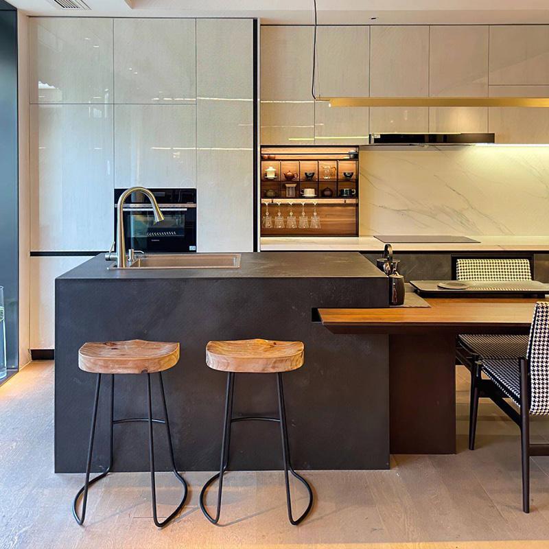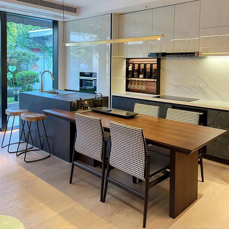 통나무 스타일 록보드 아일랜드 테이블 식탁 통합 오픈 키친 우드 그레인 역전형 텔레스코픽 홈 고급 센터 가이드 테이블