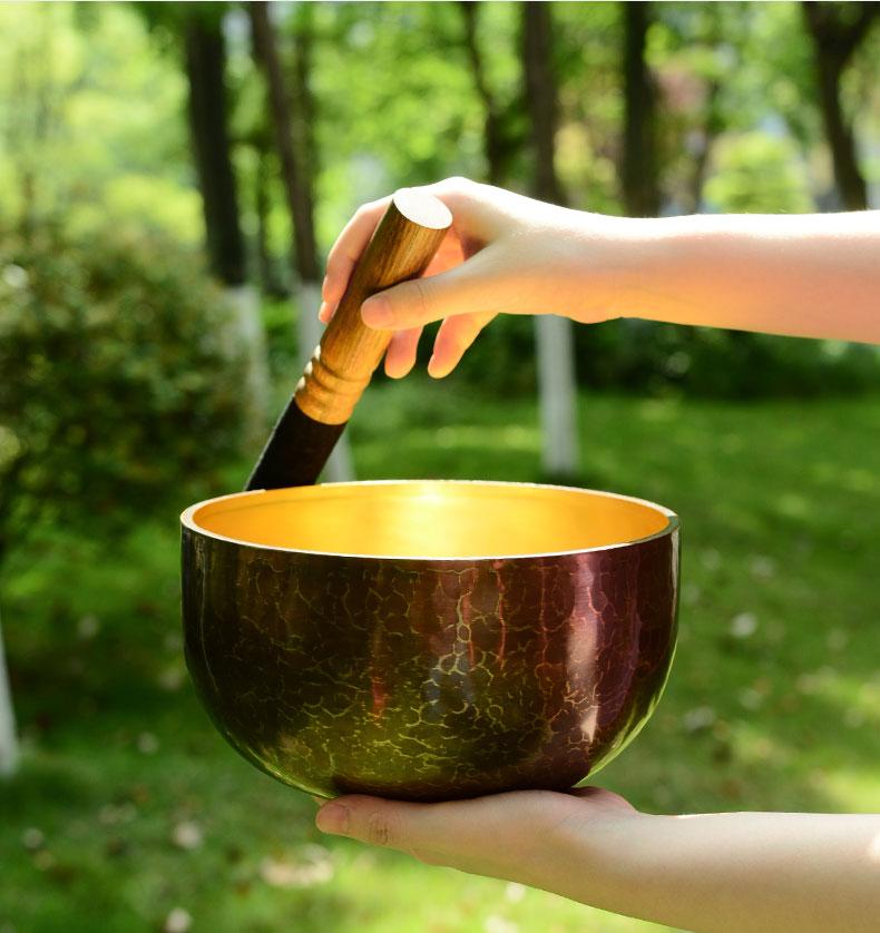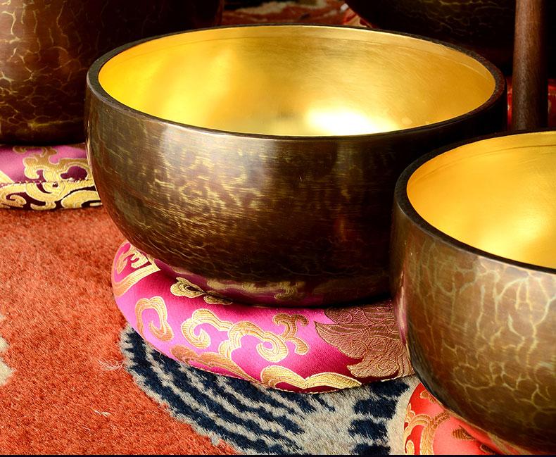 티베트 마을 수제 보라색 금 그릇 요가 명상 사운드 테라피 노래 그릇 치유 도구 명상 그릇 구리 차임 그릇 사운드 그릇 장식품
