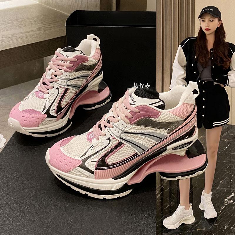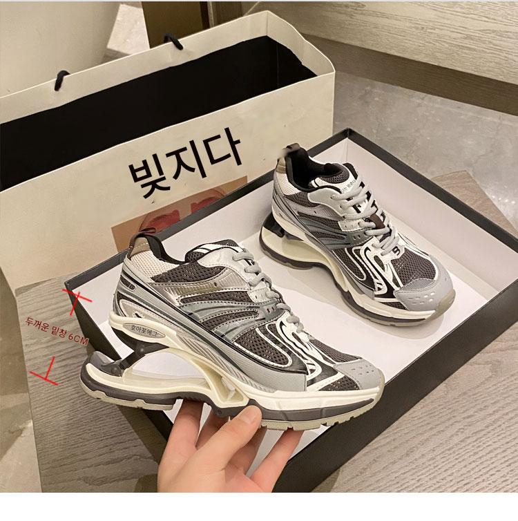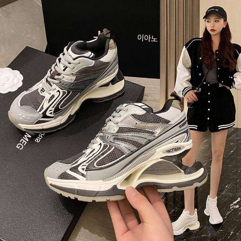 파리 스프링 슈즈 2024 신상품 가을 겨울 두꺼운 바닥 높이 통기성 충격 흡수 서스펜션 레저 스포츠 아빠 슈즈 여성용