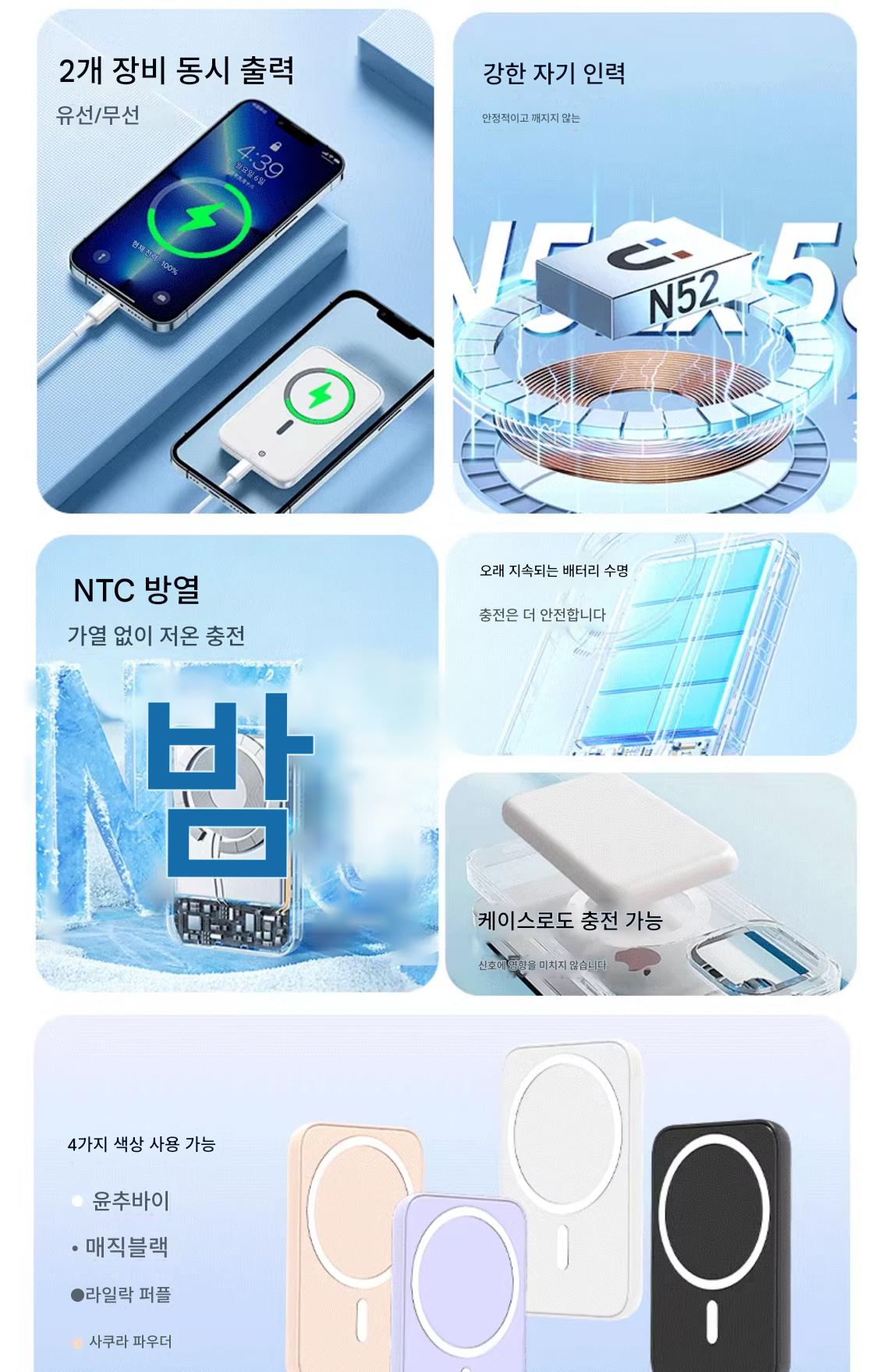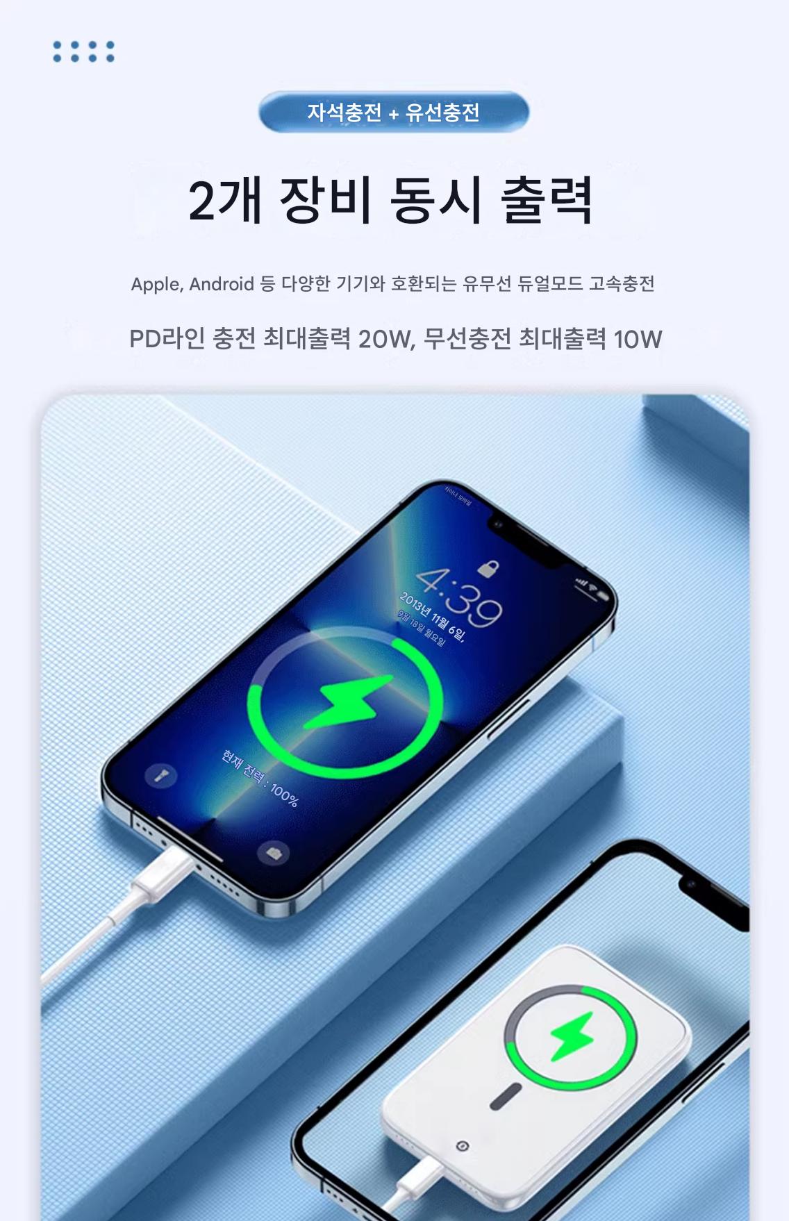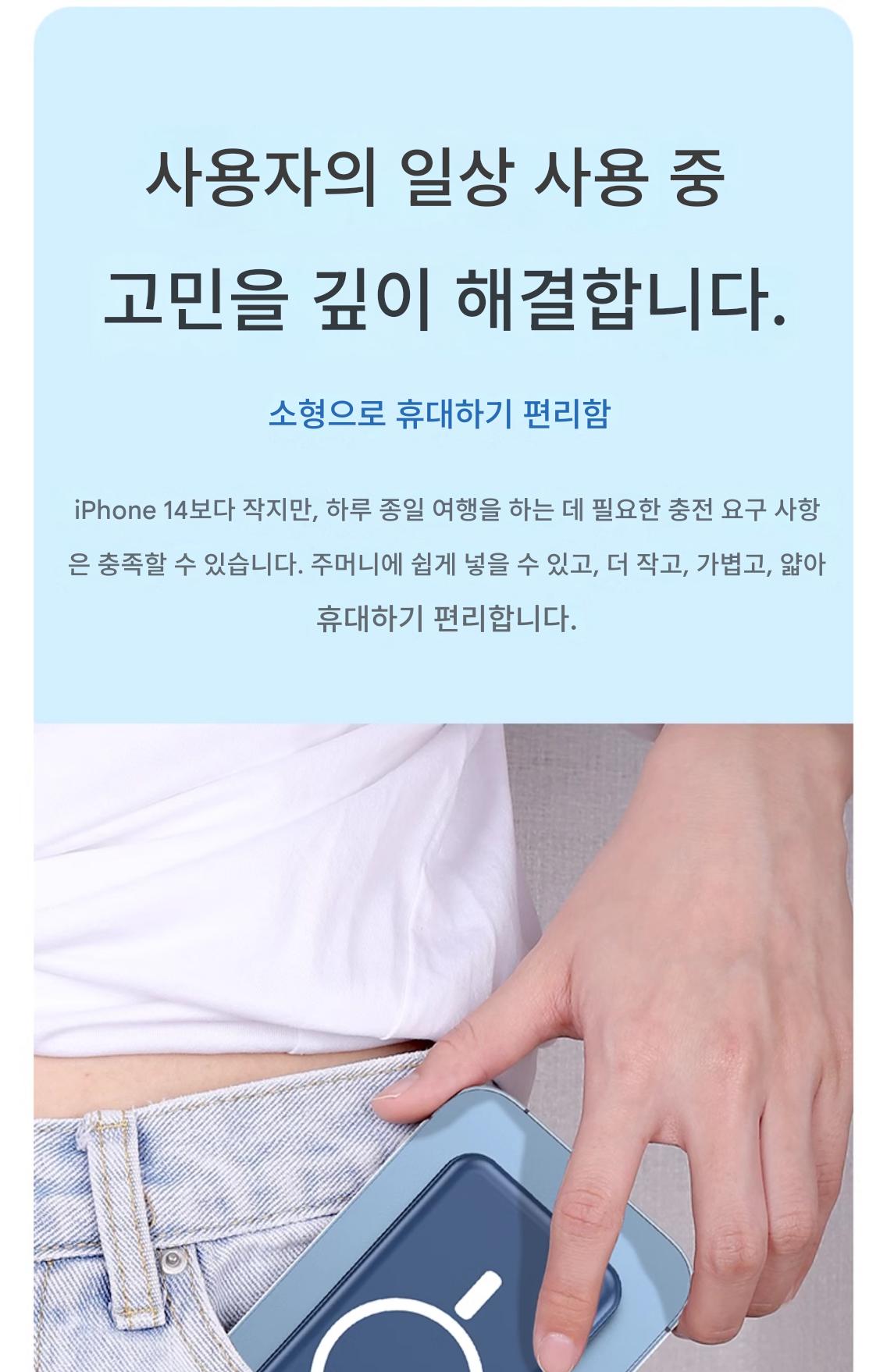 파워뱅크 자석흡입 10000mAh 무선 휴대용 탑승 magasafe iphone15 호환