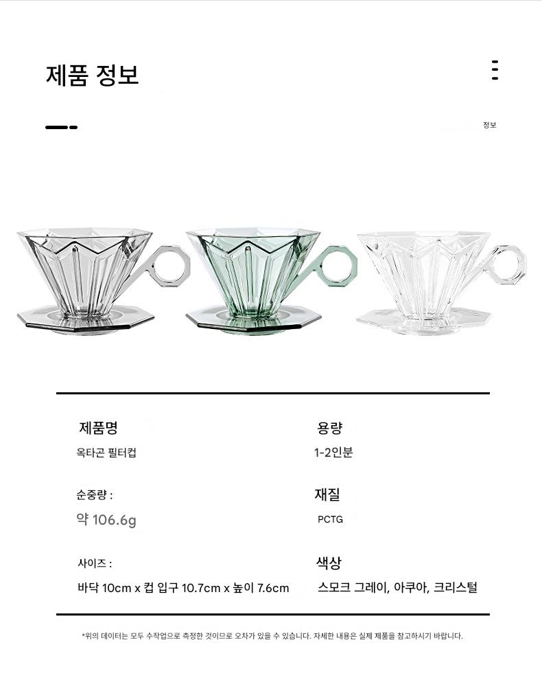 팔각형 크리스탈 다이아몬드 필터 컵 휴대용 야외 커피 필터 컵 수제 커피 포트 필터 드립 포트 세트