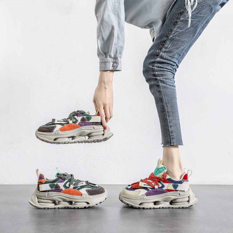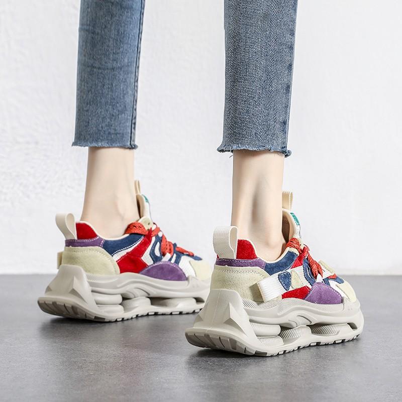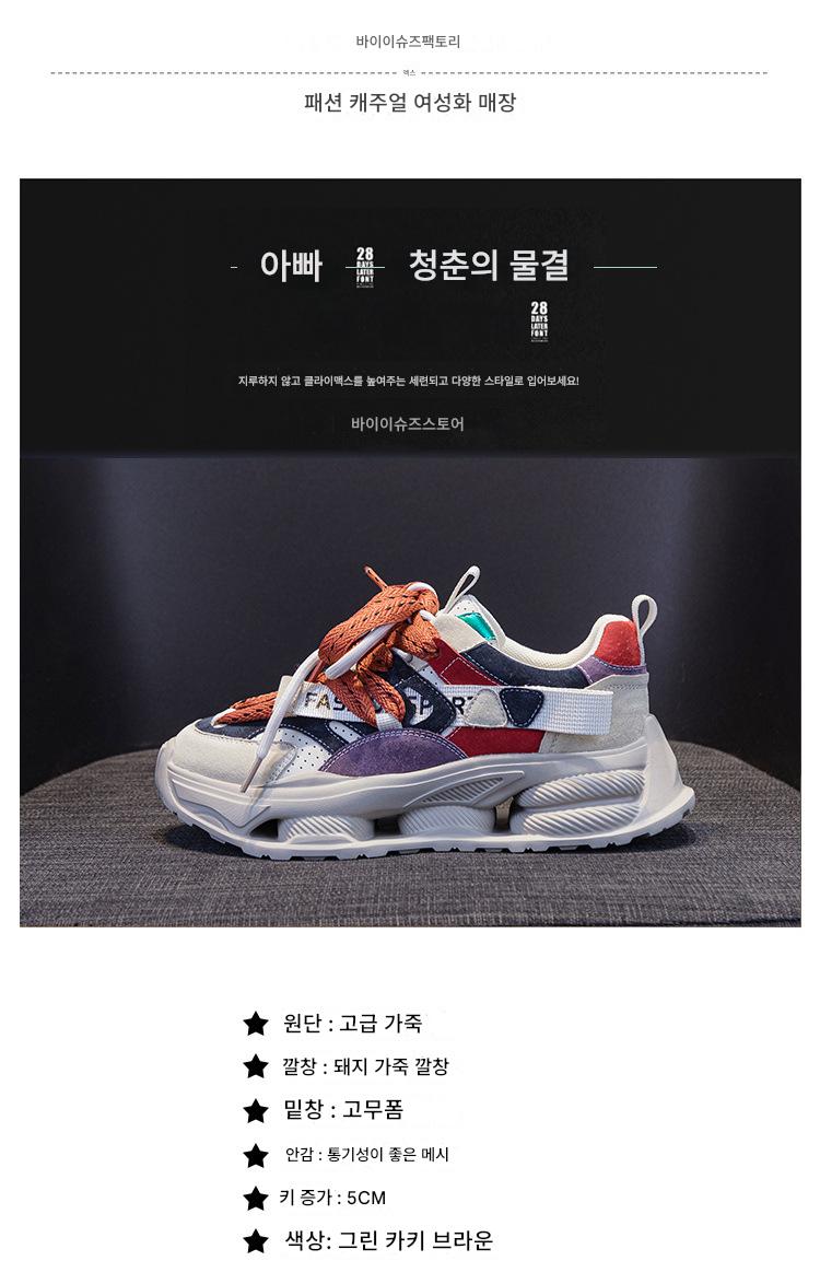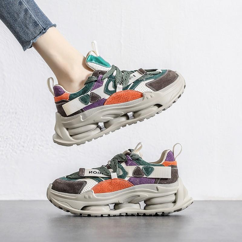 패션 브랜드 컬러 매칭 아빠 신발 여성용 2024 봄과 가을 신상 두꺼운 밑창 가벼운 정품 가죽 통기성 여성화 스포츠 캐주얼화 트렌디