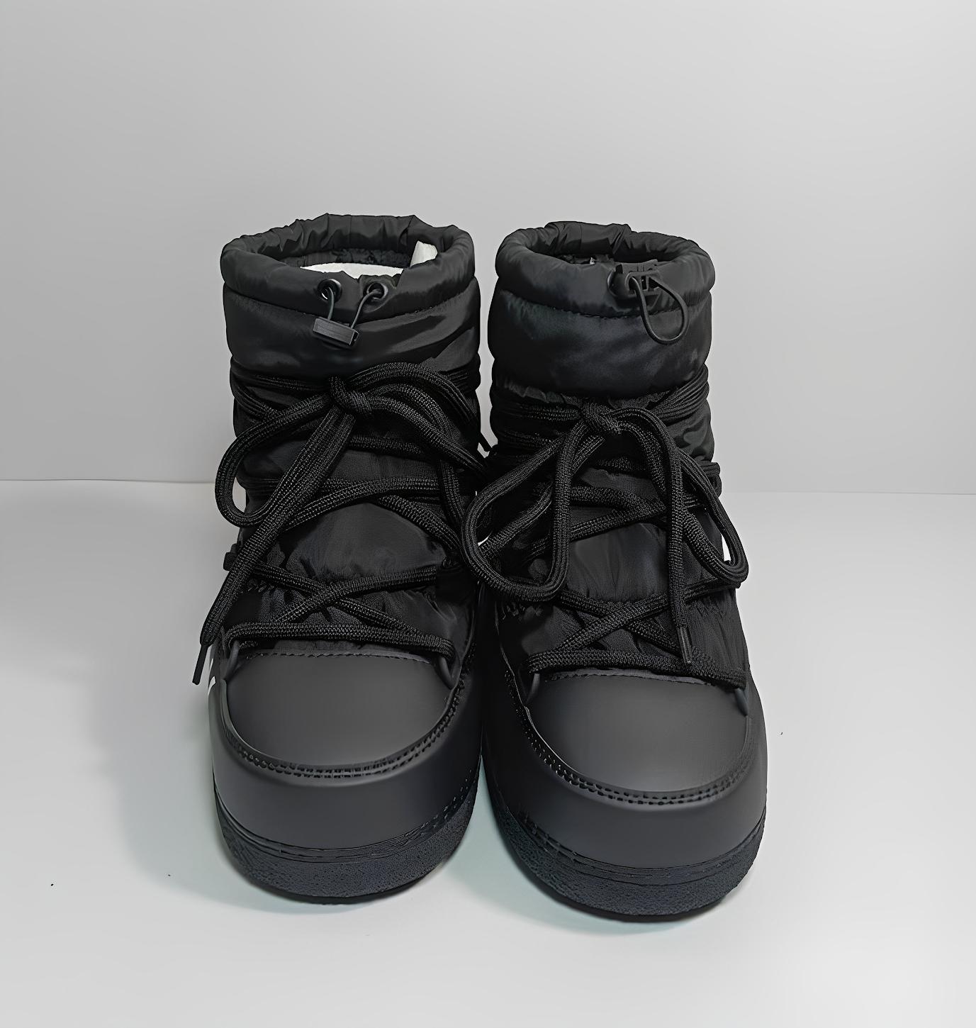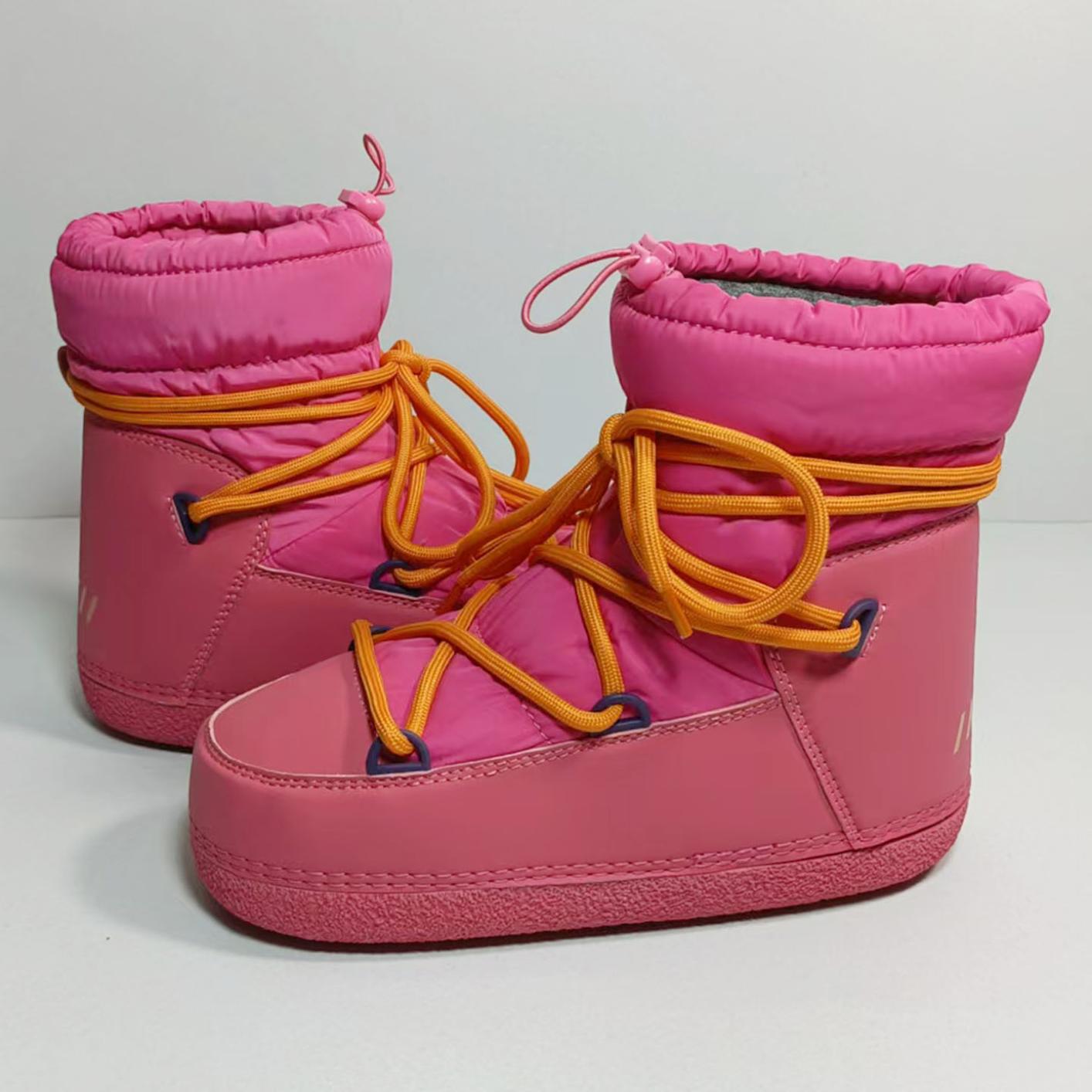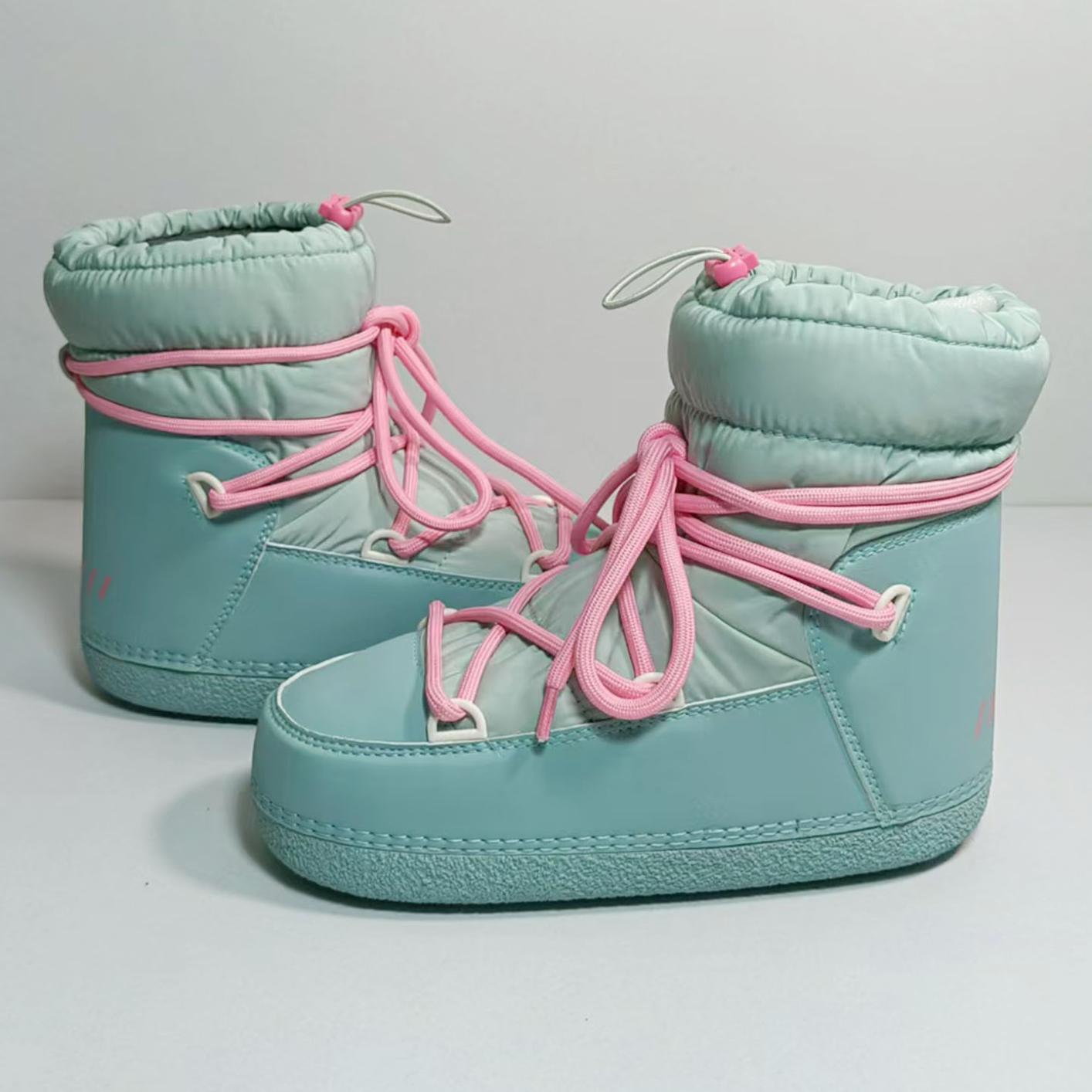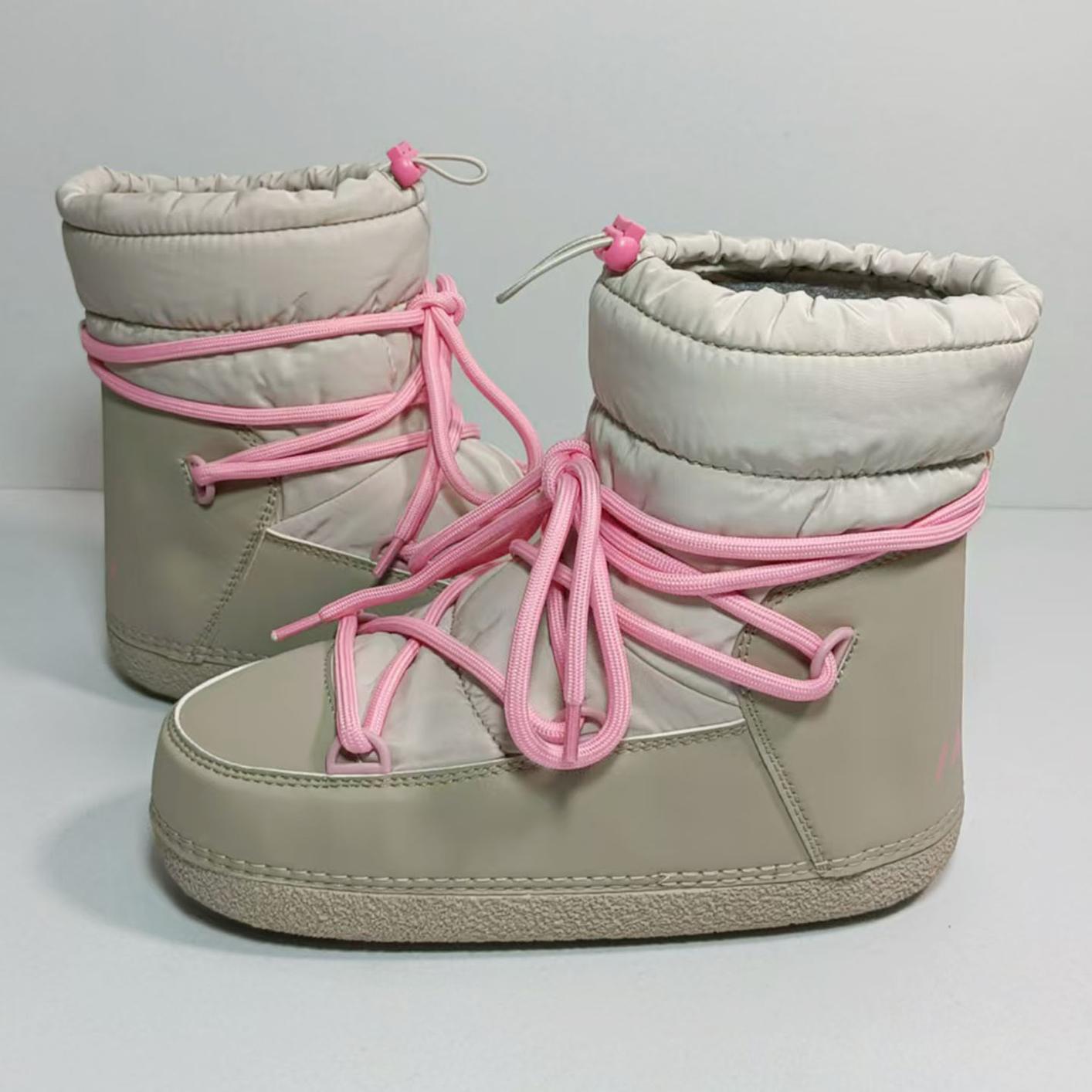 패션 스노우 부츠 여성용 두꺼운 밑창 미끄럼 방지 레이스업 문 부츠 유럽 스테이션 뚱뚱한 머리 못생긴 귀여운 코튼 부츠 다운 천 스키 부츠