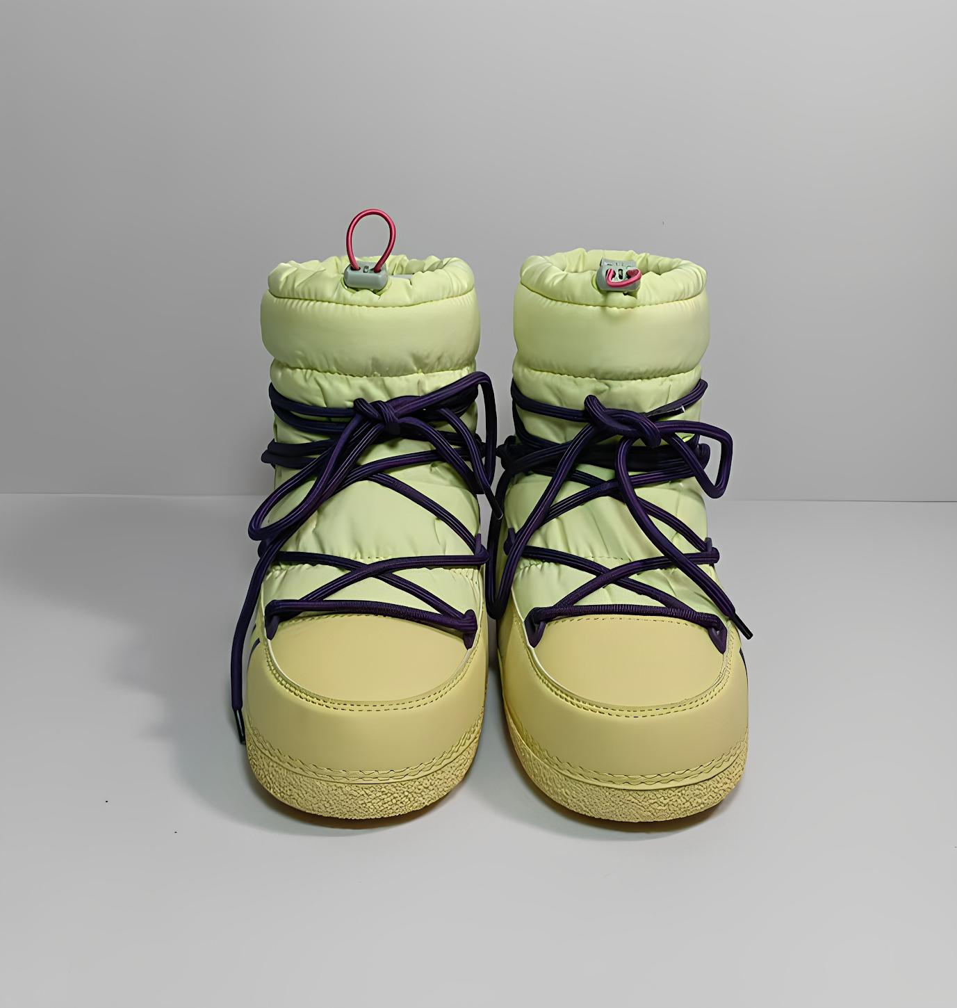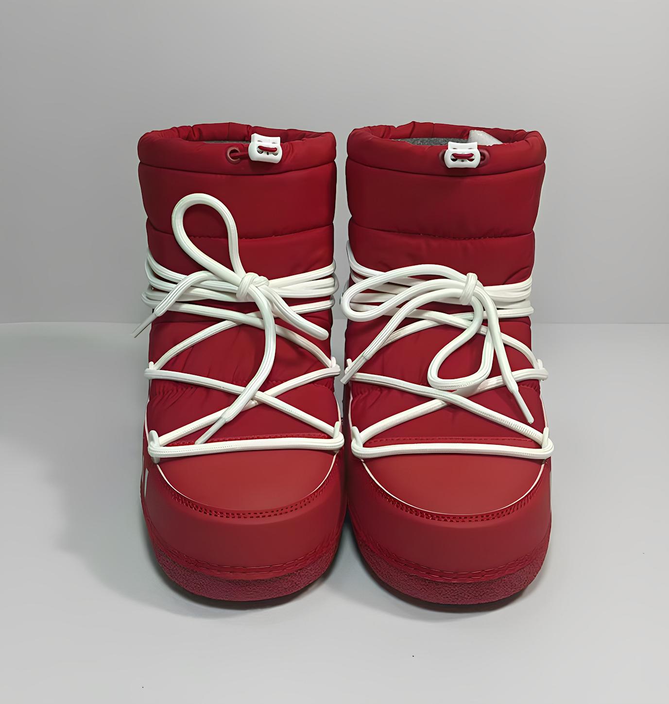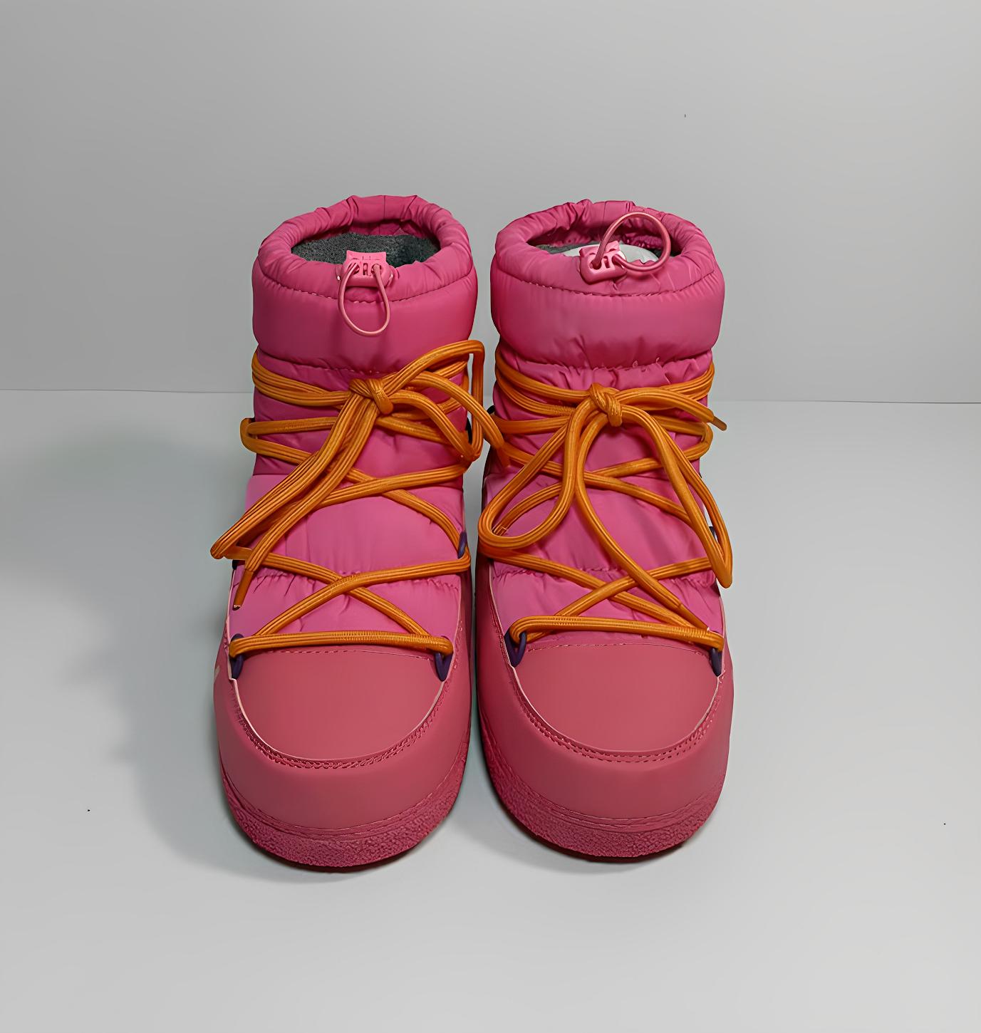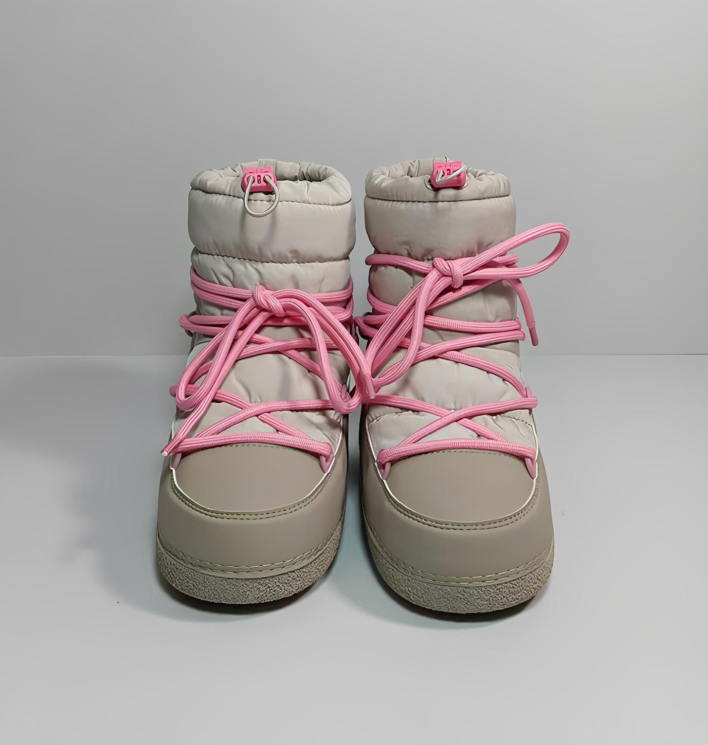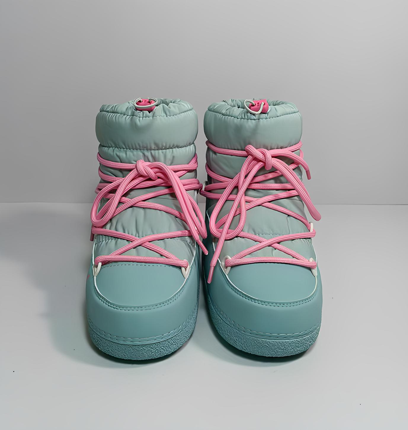 패션 스노우 부츠 여성용 두꺼운 밑창 미끄럼 방지 레이스업 문 부츠 유럽 스테이션 뚱뚱한 머리 못생긴 귀여운 코튼 부츠 다운 천 스키 부츠
