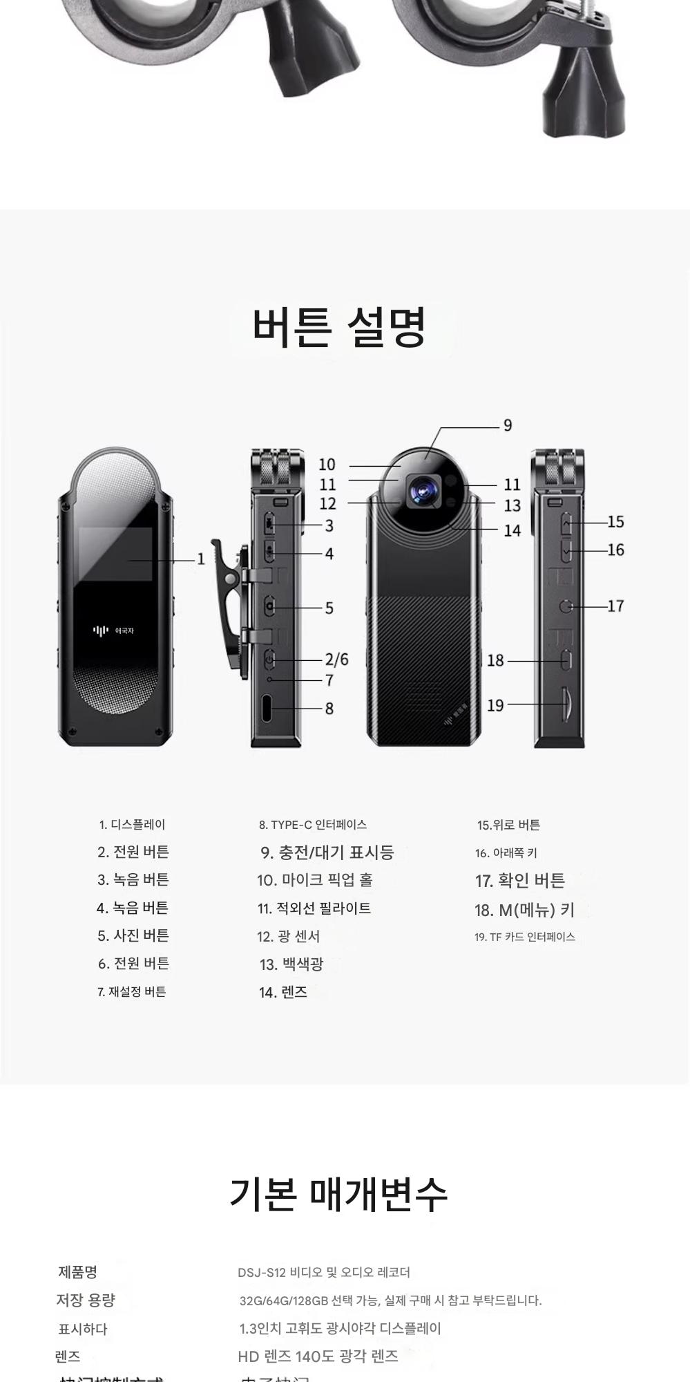 패트리어트 S12 법 집행 기록 장치 HD 야간 투시 가슴 장착형 WiFi 휴대전화 상호 연결 휴대용 스포츠 카메라