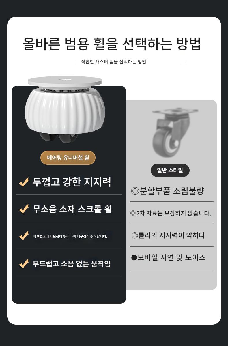 펀치프리 미니 유니버셜 휠 이동가구 불스아이베이스 소파 풋패드 커피테이블 무소음 접착 풀리