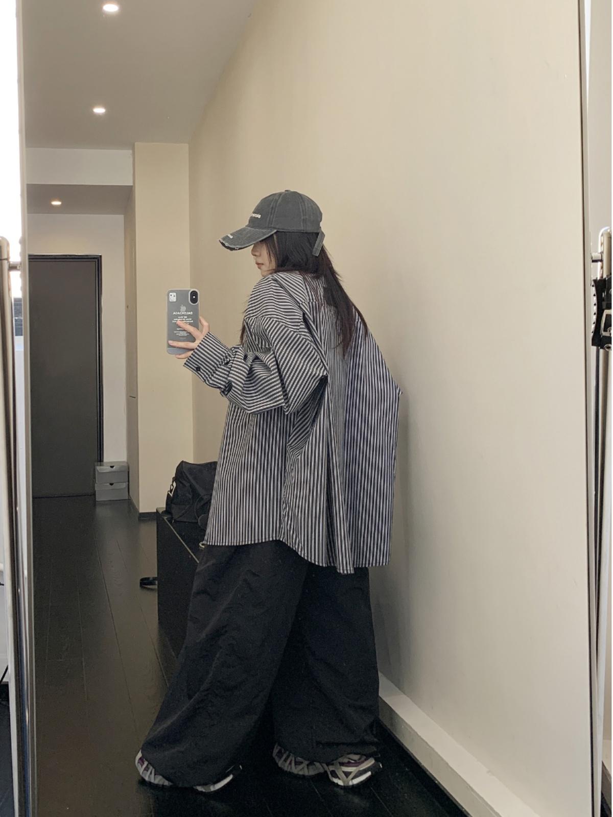 페이차이 가을 신상품 미국 니치 실루엣 긴팔 셔츠 오버사이즈 루즈 자수 스트라이프 셔츠 여성 트렌드