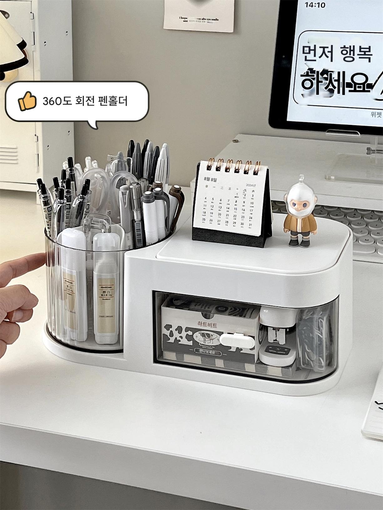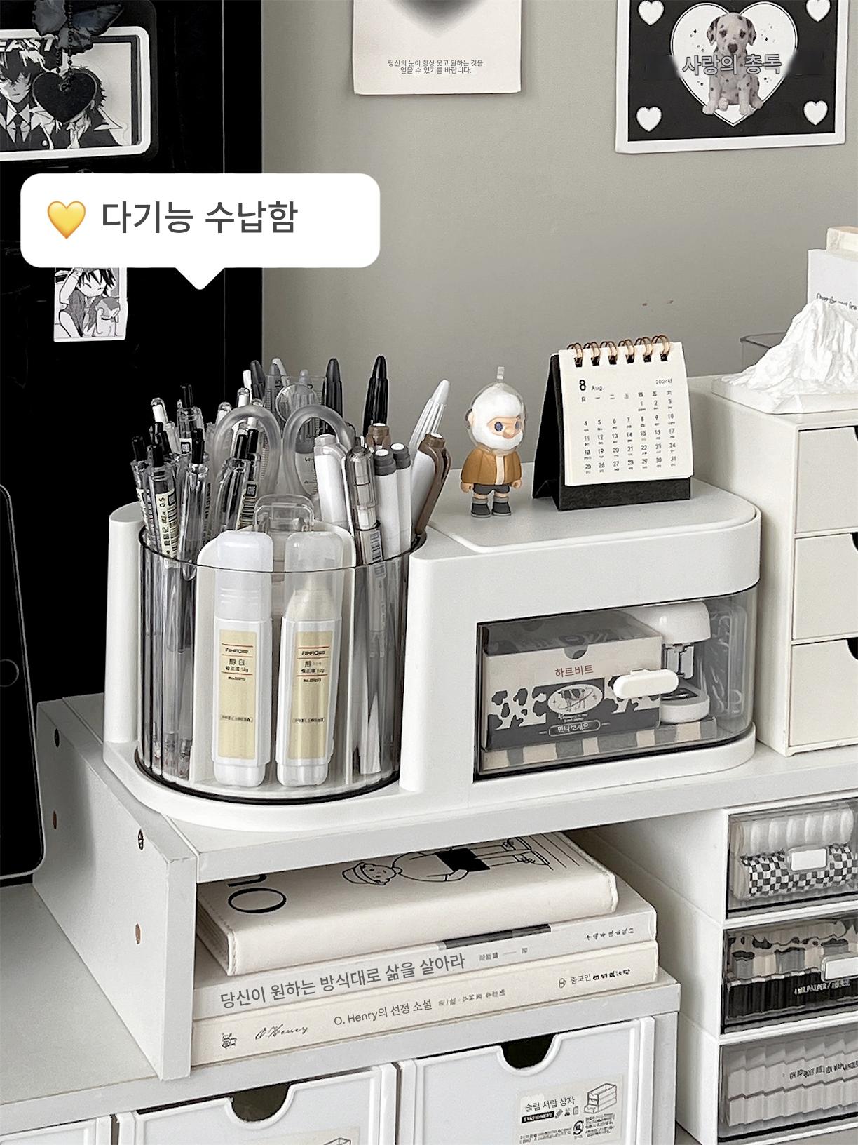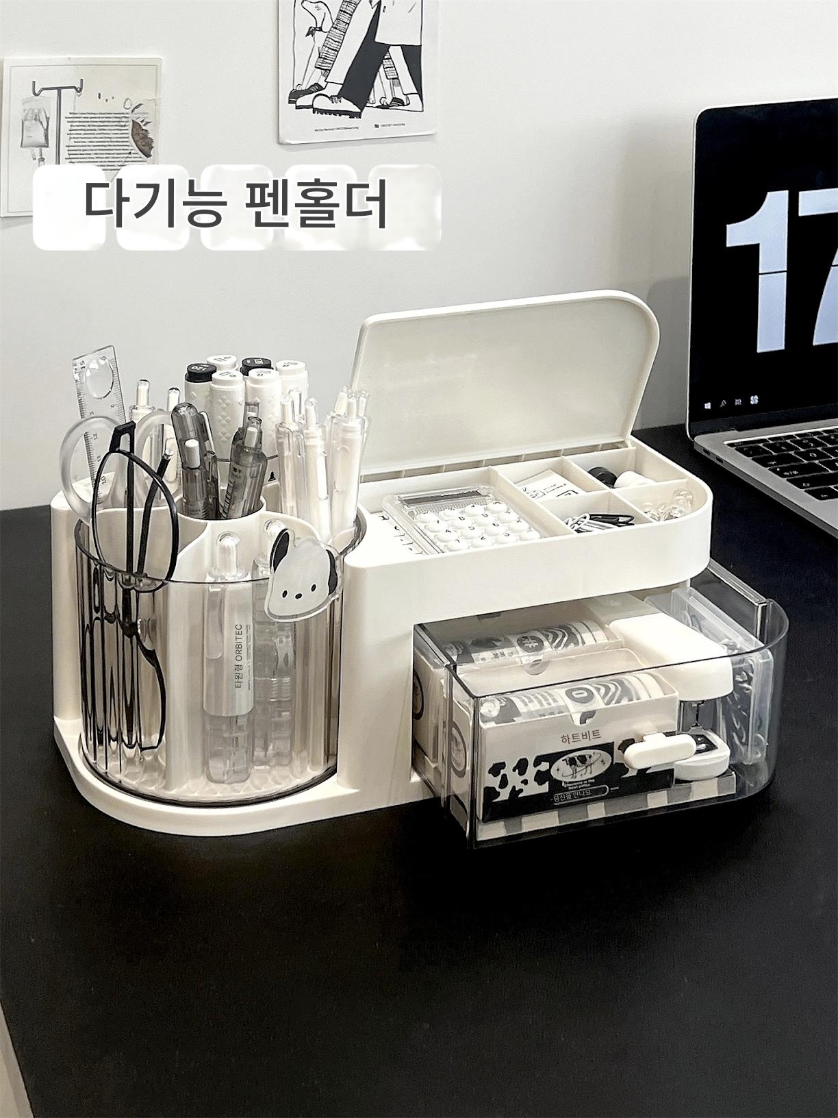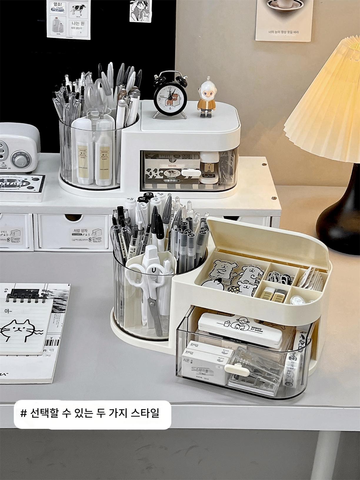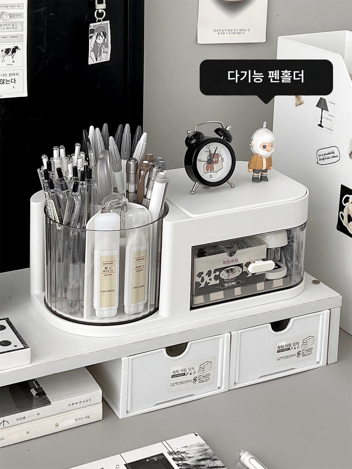 펜홀더 수납함 사무실 데스크탑 대용량 어린이 여아 문구대 학생용 책상 회전 펜통
