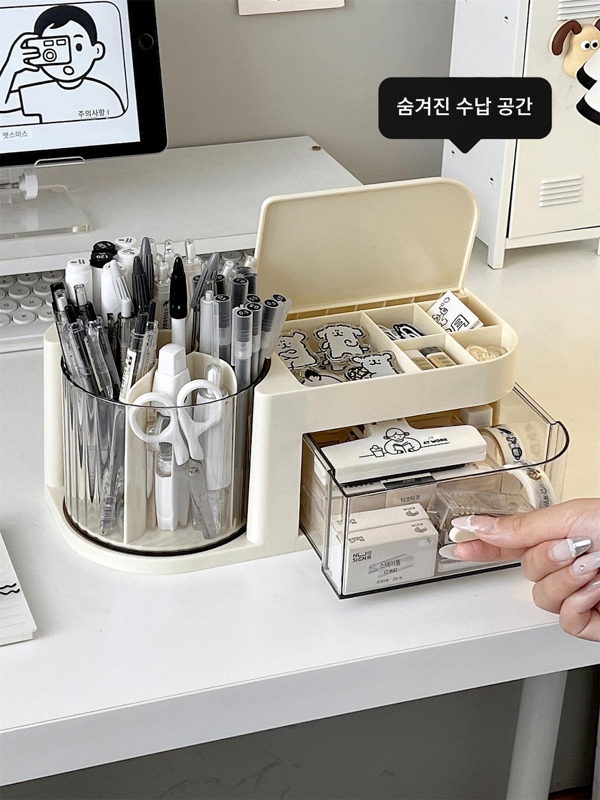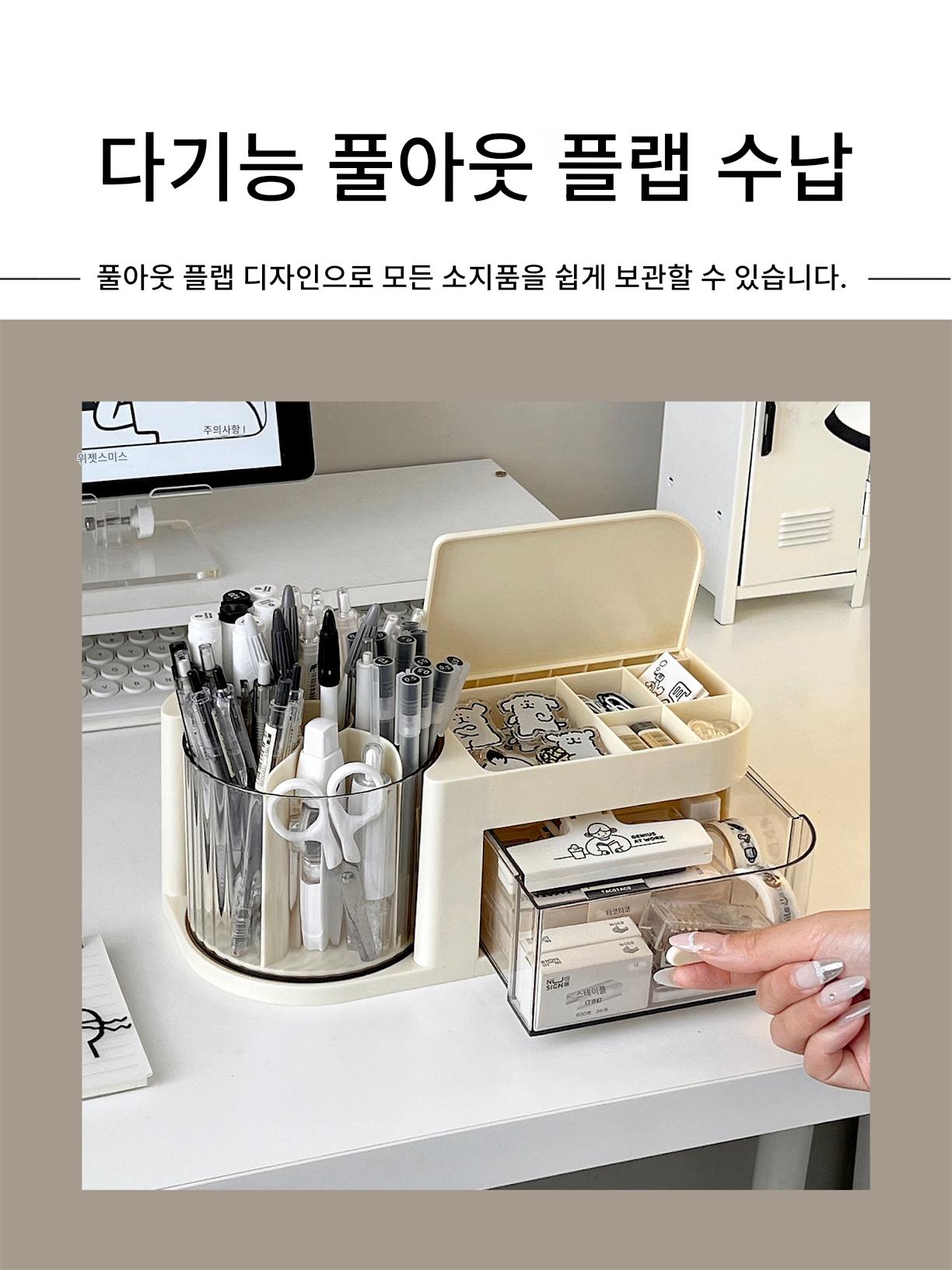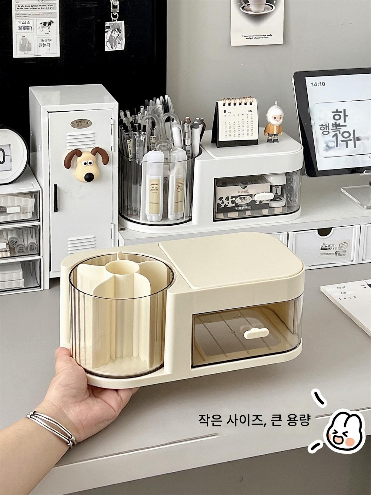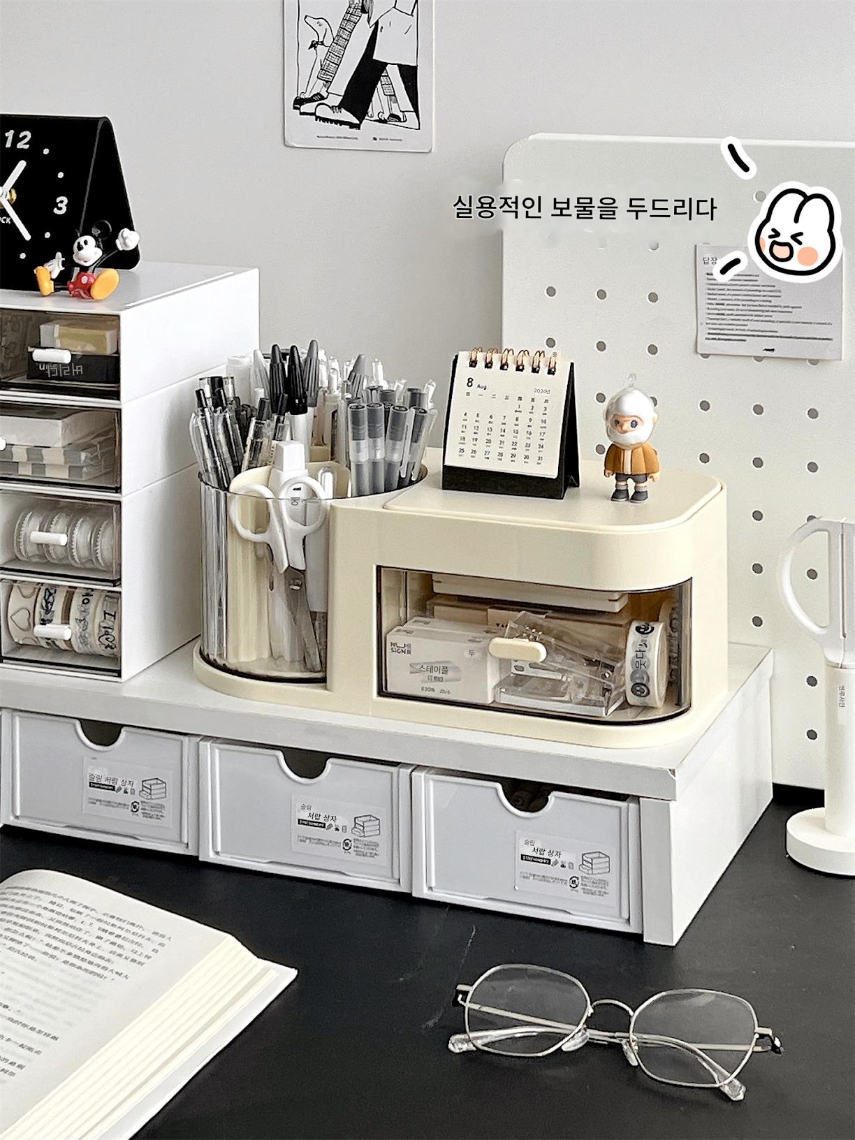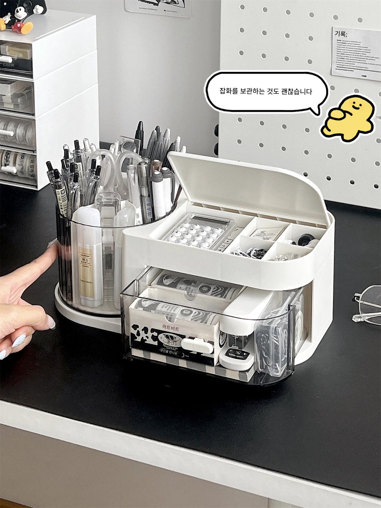 펜홀더 수납함 사무실 데스크탑 대용량 어린이 여아 문구대 학생용 책상 회전 펜통